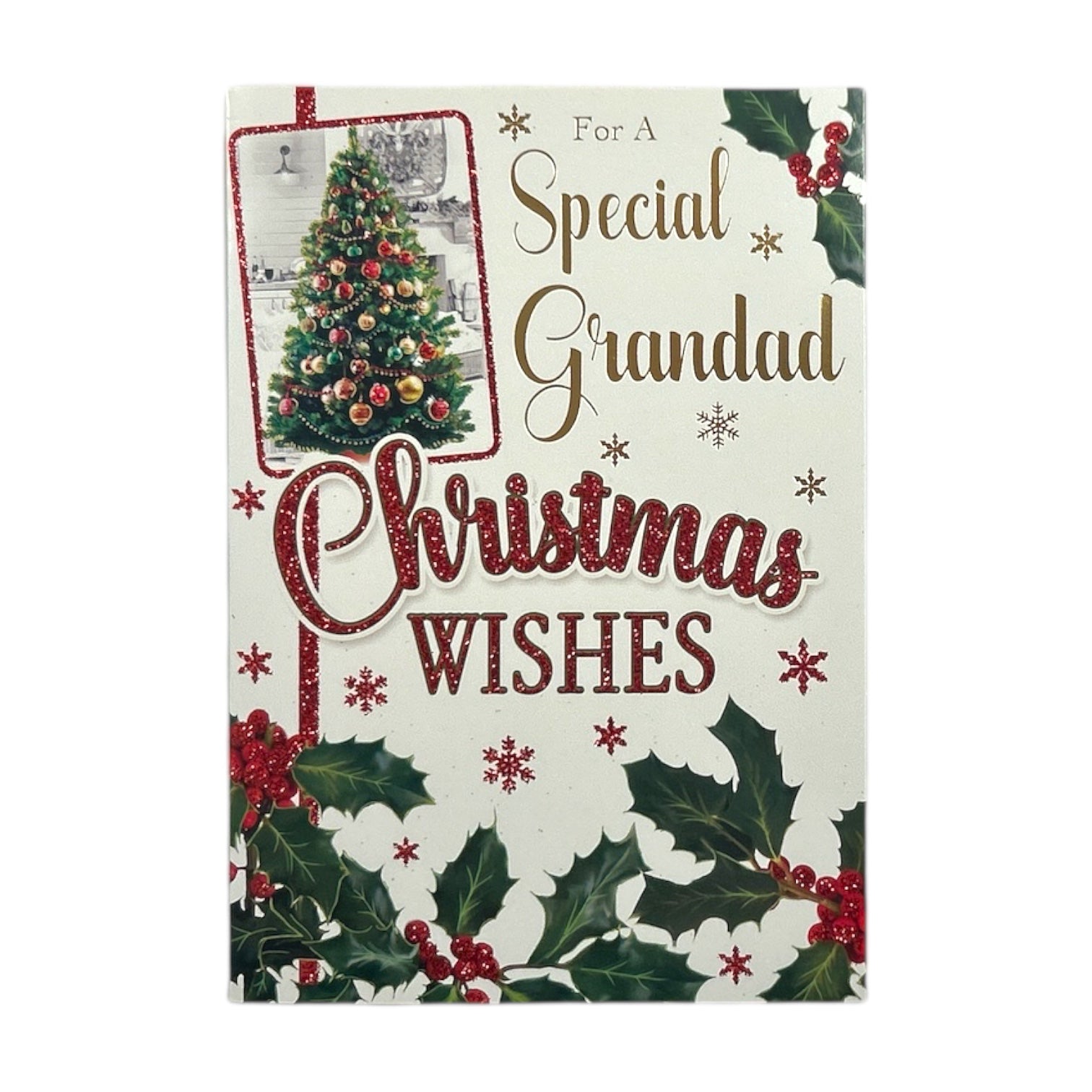 - Traditional Tree & Holly Christmas Wishes Card For Grandad