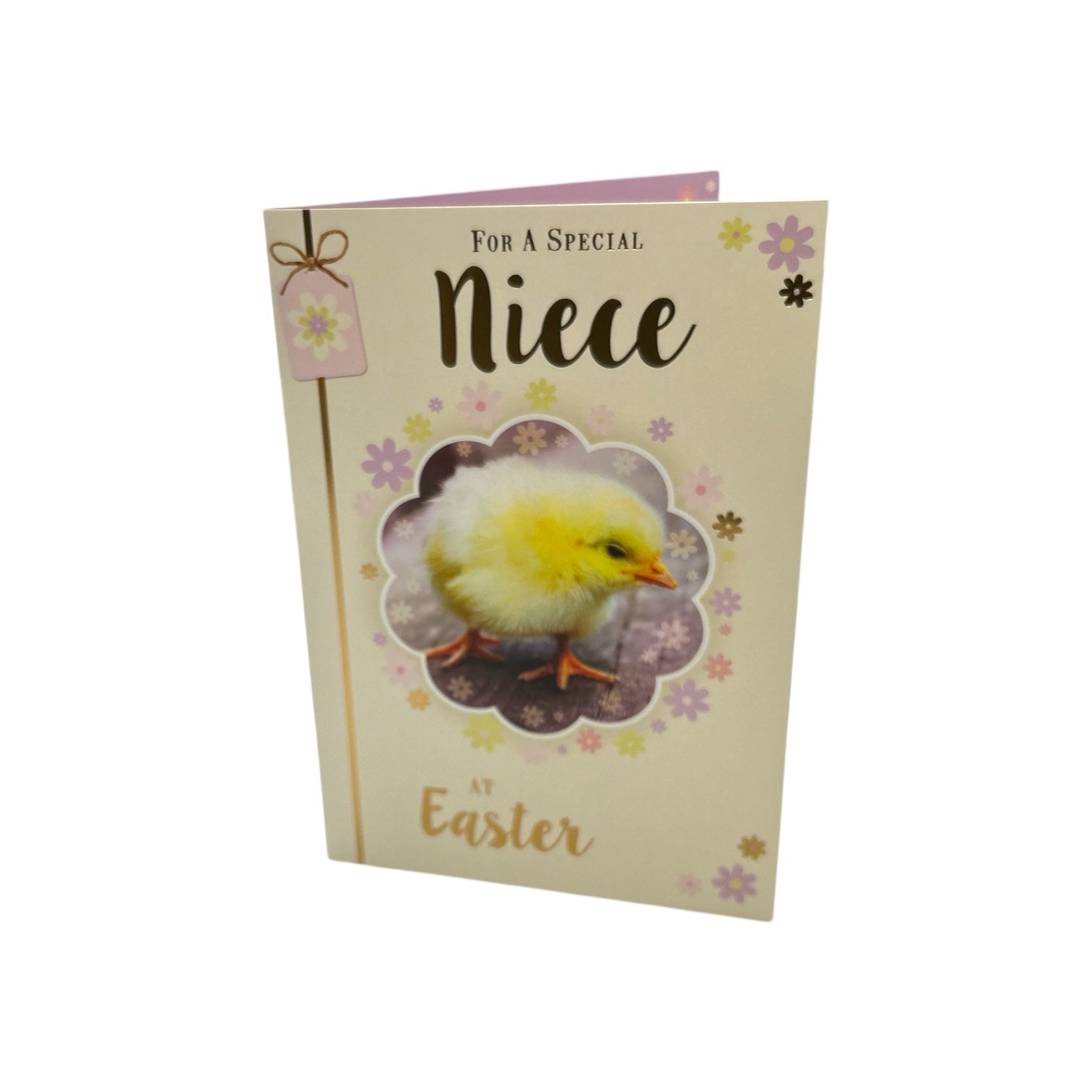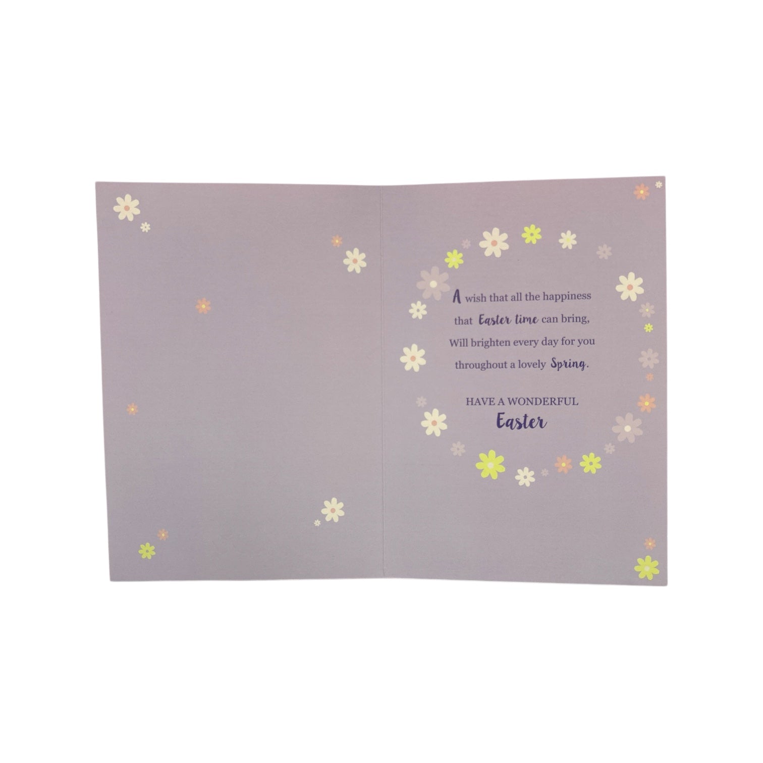 Make your niece’s Easter extra special with this adorable Easter Card. Featuring a cute design of a fluffy chick surrounded by delicate flowers, this card beautifully captures the joy and freshness of spring. Elegant embossed details and shimmering foil accents add a touch of charm, making it a wonderful keepsake. Complete with a coordinating envelope, it’s the perfect way to send love and warm Easter wishes to a cherished niece. Card Size: Approx. 19.5 x 14 cm.