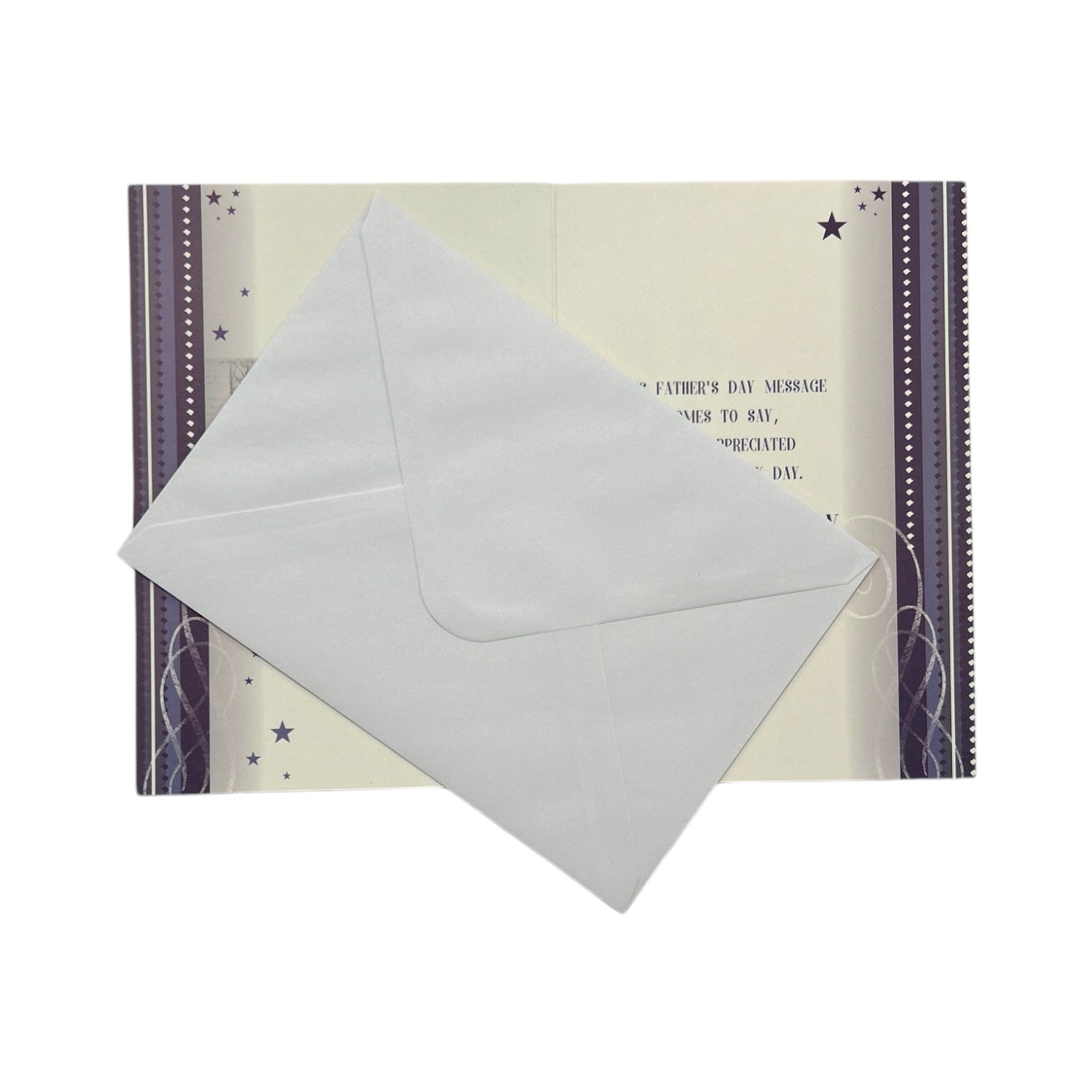 This heartfelt Father's Day card for him features elegant typography and a nostalgic illustration of a classic car, symbolizing love and appreciation. The balanced composition places the greeting "HAPPY FATHER'S DAY GRANDAD" at the top, with the vintage car and a quaint house below, evoking warmth and family ties. Decorative stars and stripes frame the design, adding visual interest. Inside, the sentiment continues with heartfelt birthday wishes, making this a meaningful and celebratory keepsake for a special occasion. The card comes with a coordinating envelope. Approximate size: 19.5" x 14"