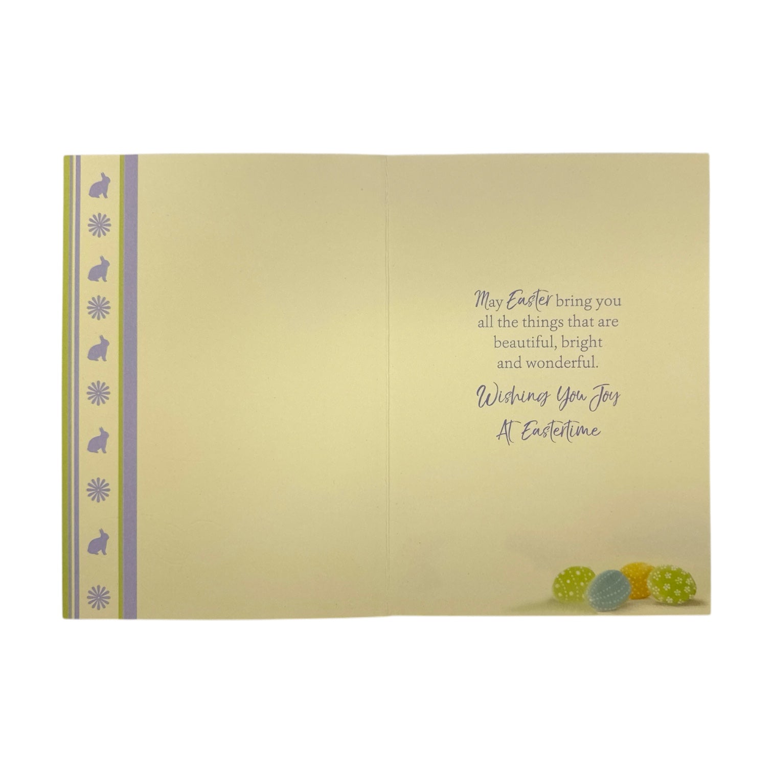 Send heartfelt Easter wishes with this charming Easter card, perfect for celebrating the joy of the season. Featuring a charming design of a spring flower pot adorned with vibrant blossoms and beautifully decorated Easter eggs in colorful patterns, this card perfectly captures the spirit of renewal and celebration. Finished with elegant embossed details and shimmering foil accents, it adds a touch of sophistication and festive cheer. Complete with a coordinating envelope, this card is a lovely way to share Easter blessings and happiness with your family and friends. Card size: Approx. 19.5 x 14 cm.