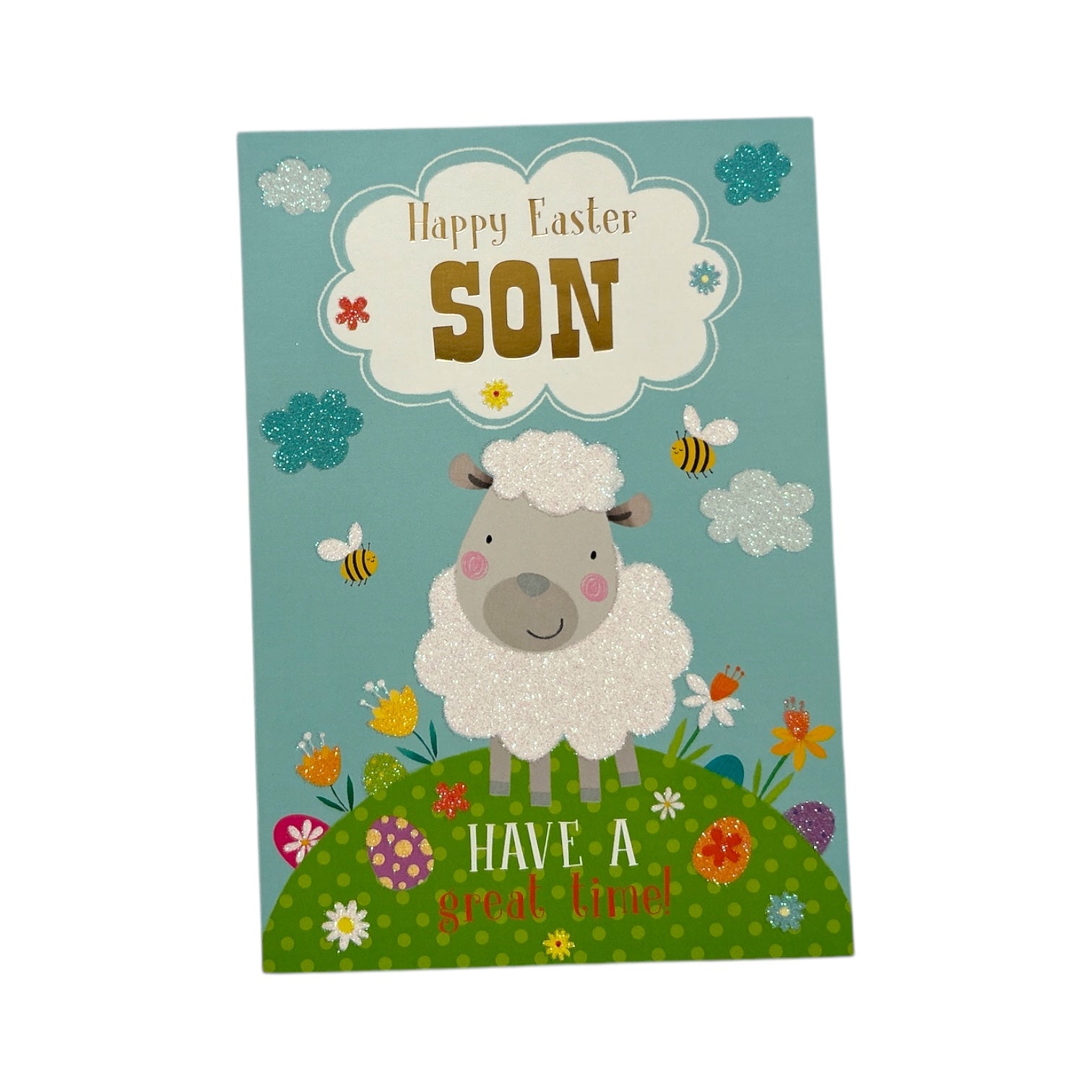 Share the joy and blessings of Easter with this greeting card, a beautiful way to celebrate the season of hope and renewal. Featuring an elegant design with stunning colors. Embossed details and shimmering foil accents add a touch of elegance, making it truly special. The heartfelt message on the front reads, "Happy Easter Son Have A Great Time" —a reminder of faith and love during this sacred time. Complete with a coordinating envelope, this card is perfect for sending warm wishes to family and friends. Card size: Approx. 19.5 x 14 cm.