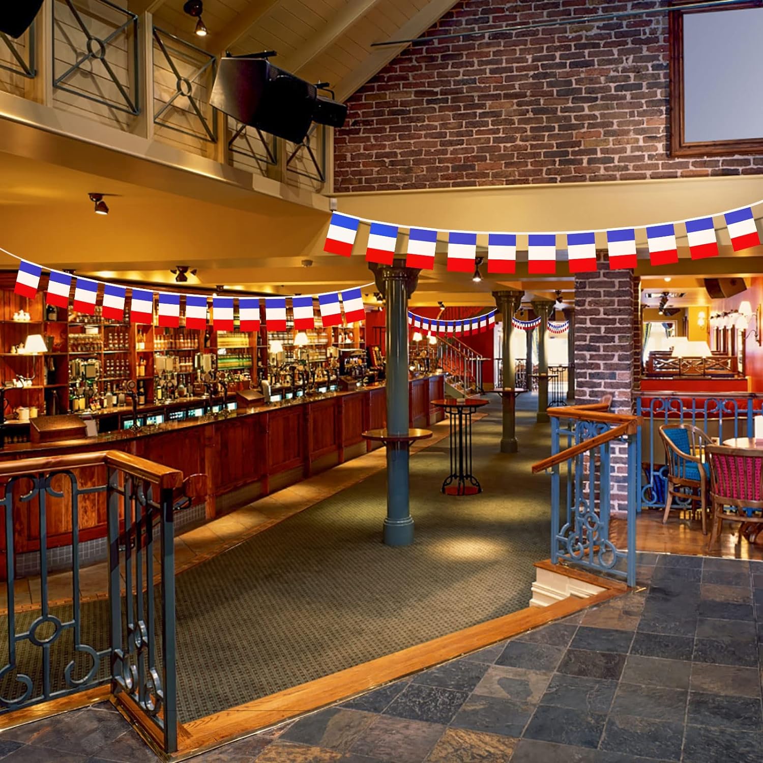 France Bunting 10m with 20 Flags. This bunting measures 10m and has 20 pennants. Material: PVC. Approx size of each Flag/ Pennant 30x20cm.