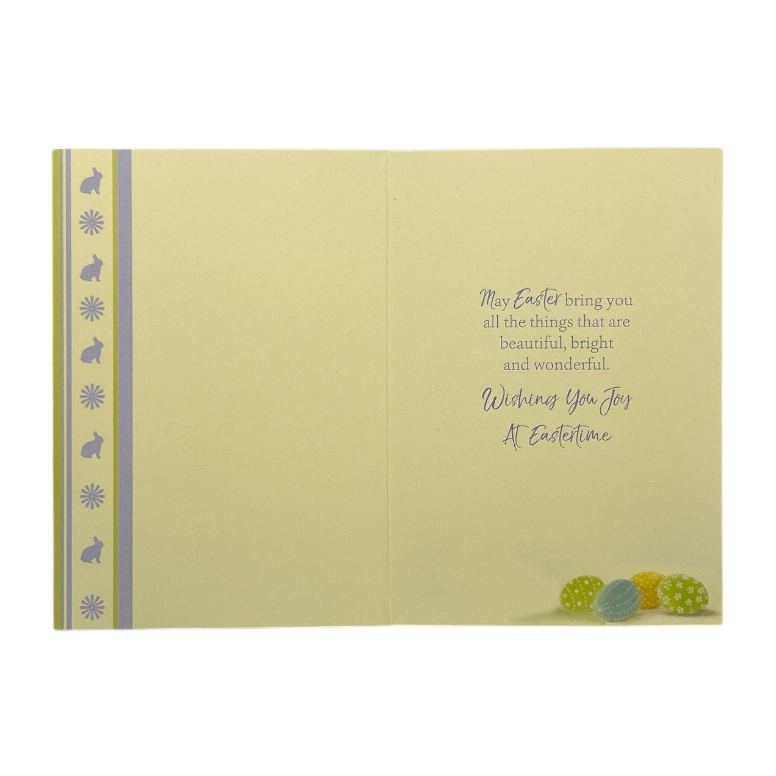 Send heartfelt Easter wishes with this charming Easter card, perfect for celebrating the joy of the season. Featuring a charming design of a spring flower pot adorned with vibrant blossoms and beautifully decorated Easter eggs in colorful patterns, this card perfectly captures the spirit of renewal and celebration. Finished with elegant embossed details and shimmering foil accents, it adds a touch of sophistication and festive cheer. Complete with a coordinating envelope, this card is a lovely way to share Easter blessings and happiness with your family and friends. Card size: Approx. 19.5 x 14 cm.
