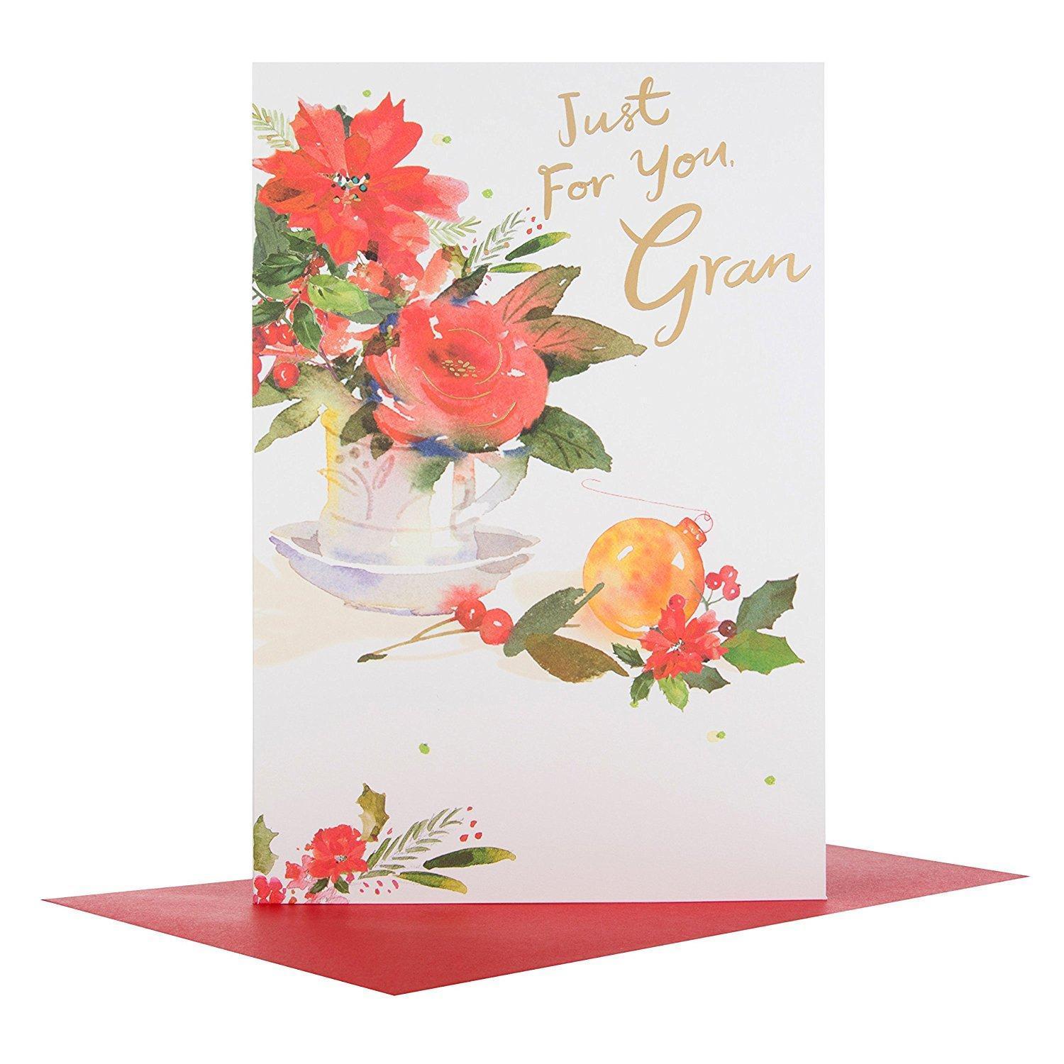 Send Christmas wishes to a special Gran with this traditional card from Hallmark. Finishes: Foil. Includes: Red Envelope. Royal Mail Postage: Standard Letter Size. Size: 210 x 146mm.