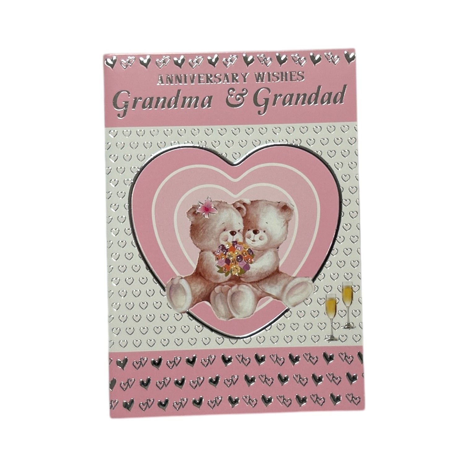 - Grandma & Grandad Cute Teddies In Pink Heart Anniversary Card