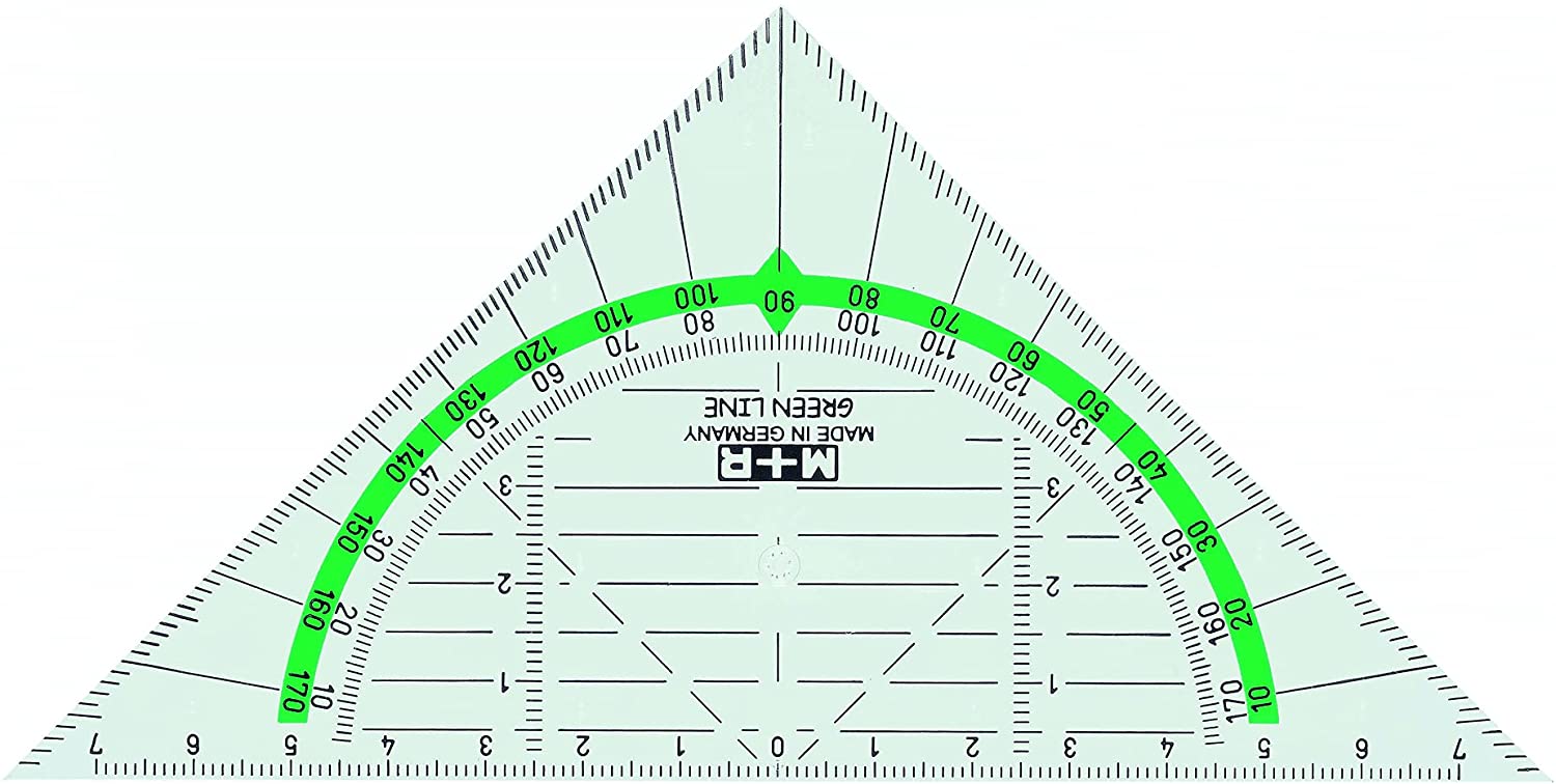 Green Line Geometric Set Square Protractor. Two-Way Scale. Bio Material With a Biobased Carbon Content of More Than 80%. Clear. 16Cm. This Green Line set square protractor is perfect for technical drawing, graphic design, garden or interior design. The protractor set square is transparent with accurately divided scale for easy reading and measurements.