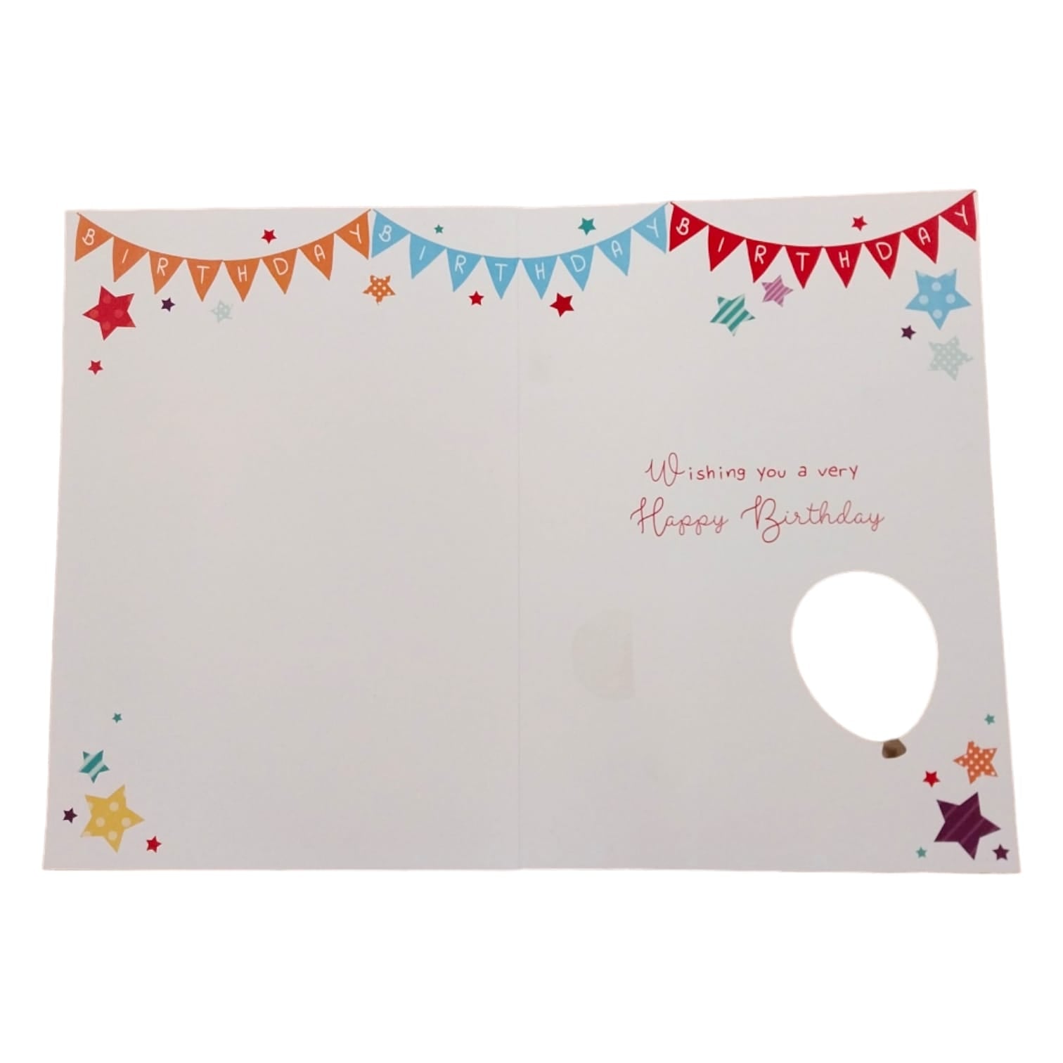 The "Happy Birthday Balloon Boutique Greeting Card" is a modern and stylish foil-finished card crafted by Balloon Boutique, designed to add an extra touch of celebration to any birthday occasion. This card comes adorned with two dazzling star foil balloons, adding a cheerful and festive flair. These balloons are intended for air filling only and are not suitable for helium. The card includes a straw for inflating the balloons, making it convenient for you to set up the decorations. Additionally, a 2-meter ribbon is provided for hanging the balloons, allowing you to effortlessly display them in any desired location. Measuring 190x130mm, this greeting card is of standard size and features a heartfelt message inside: "Wishing you a very Happy Birthday." This simple yet sincere message perfectly complements the vibrant balloons, making it a delightful way to convey your birthday wishes to a loved one. "Happy Birthday Balloon Boutique Greeting Card" offers a charming combination of visual appeal and heartfelt sentiment, making it an ideal choice for celebrating someone special on their birthday.