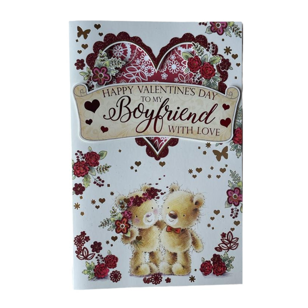 Happy Valentine's Day To My Boyfriend Couple Teddy Design Card. Approx Size: 275 x 185mm.