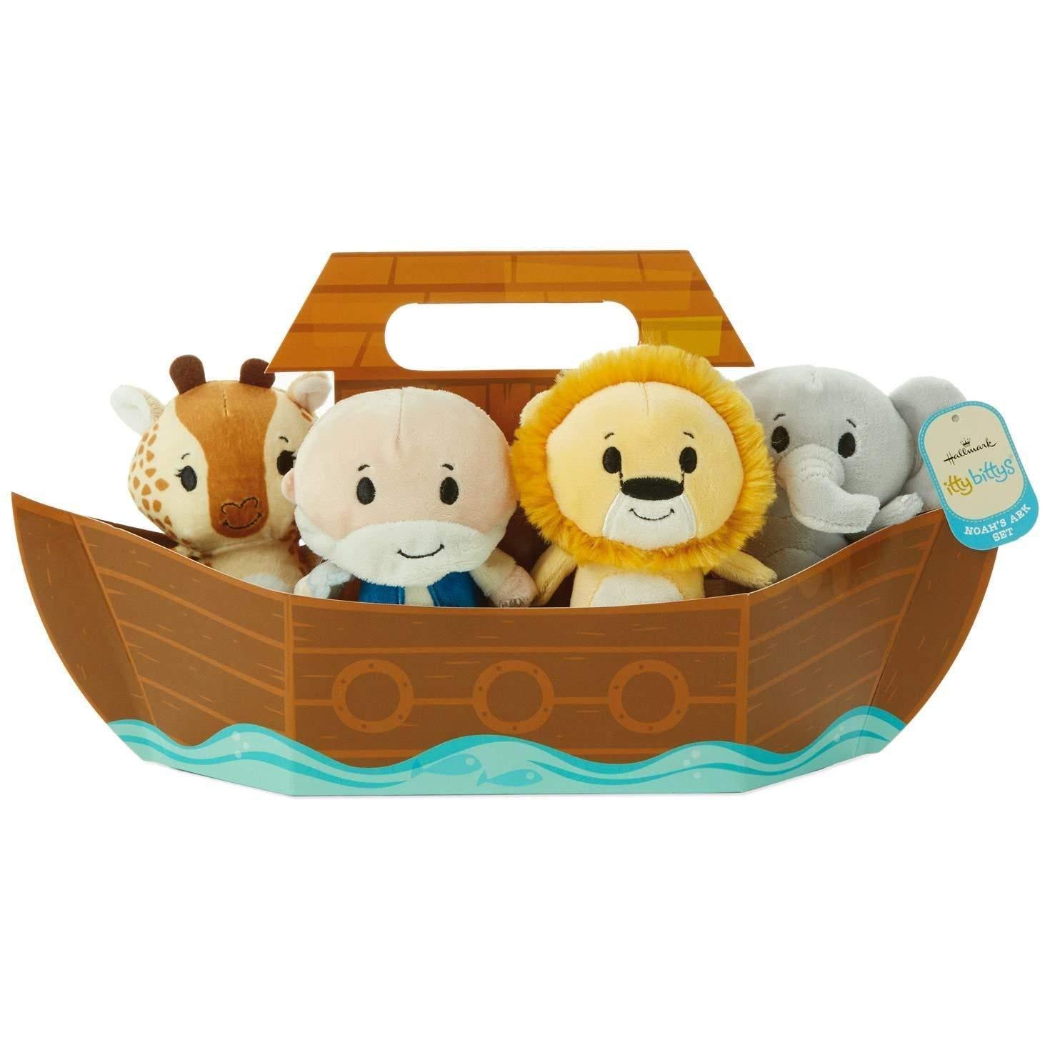Hallmark itty bittys Noahs Ark Noah, Lion, Elephant and Giraffe. Product Item Number: 25498755 | KDD1293. Dimensions Approx (each itty): Height 12cm, Width 8cm, Depth 6cm.