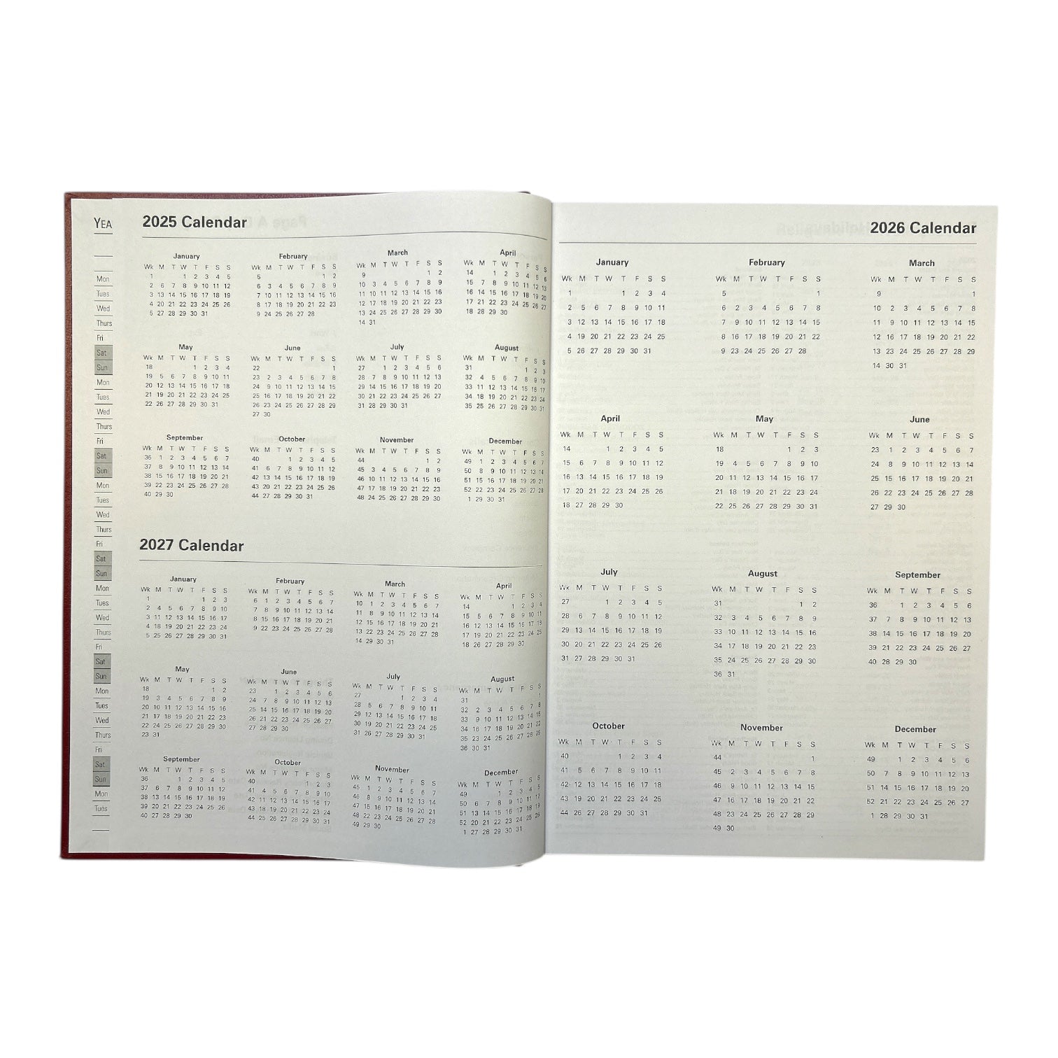 - Janrax 2026 A4 Day Per Page Burgundy Desk Diary