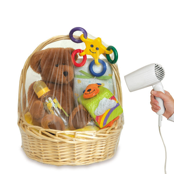 Jumbo Shrink Wrap Cellophane Bags- 24" X 30". This product is a jumbo shrink wrap cellophane bag that measures 24" X 30" and shrinks to 10.5" X 6.5". This shrink wrap is great for crafts and wrapping gift baskets on birthdays, weddings, and other occasions. Made of quality clear cellophane material that could bring elegance to your party. This product is easy to use, just take out your good old hair dryer to shrink the plastic and mold into the shape of your basket or any container.