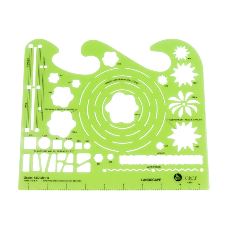Landscape Drawing Template (1:50) 202 x 171mm. Manufactured in green impact modified acrylic with silk screened printing and thickness 0.76mm.
