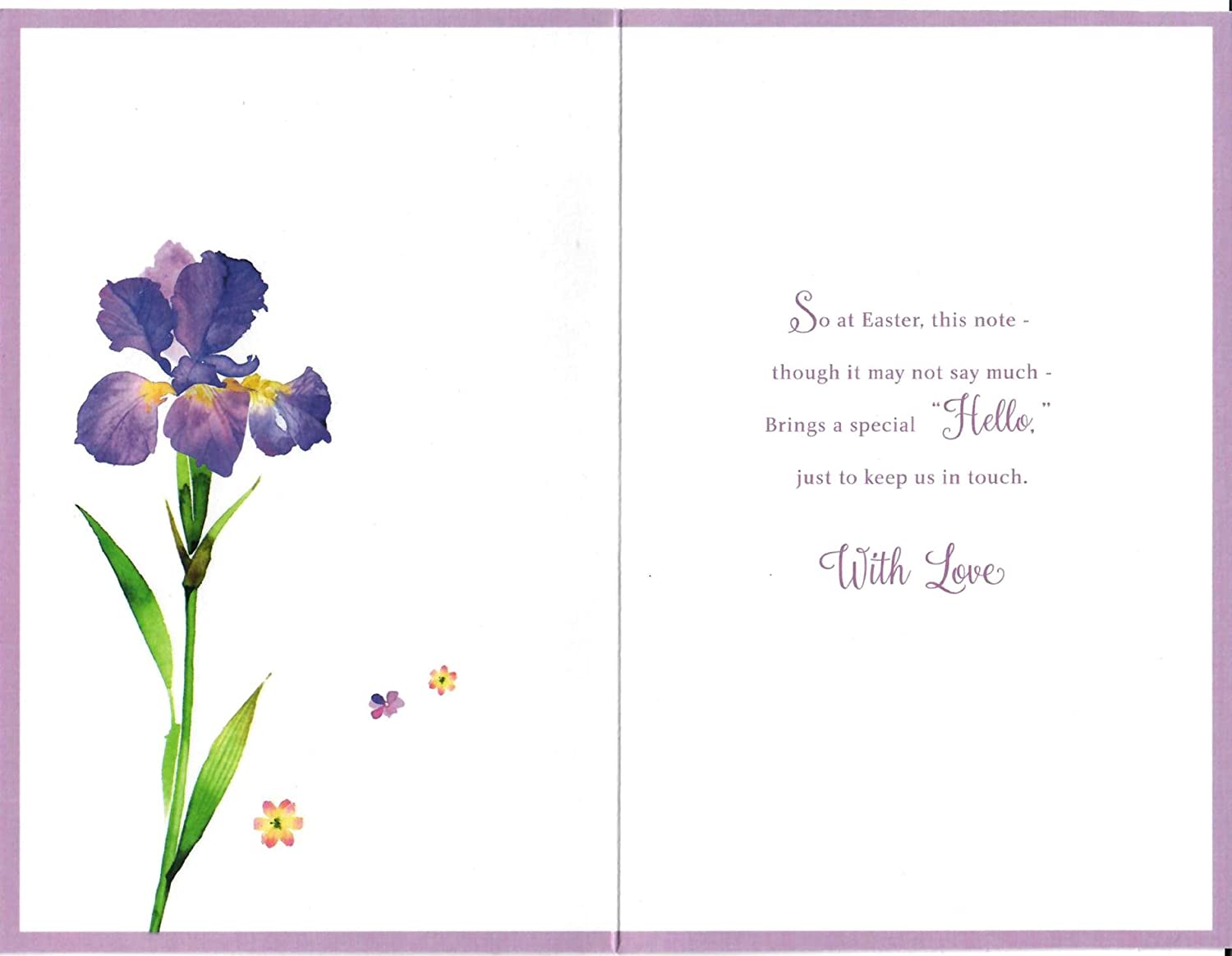 Lovely Verse Glitter Finished Design Easter Card. Inside Message: "So at Easter, this note though it may not say much Brings a special Hello, just to keep us in touch. With Love." Approx Size: 121 x 184mm. Postage: Standard UK Letter Size.