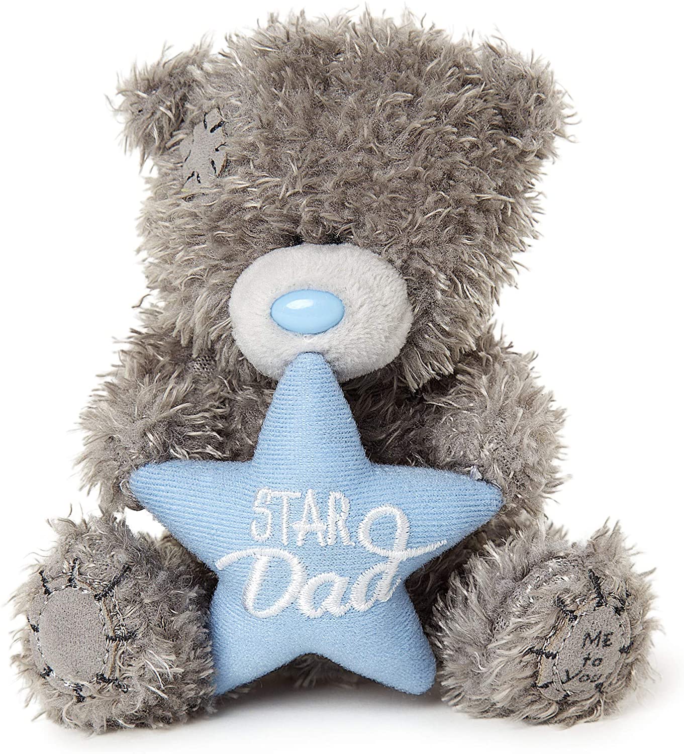 Official Me to You Dad Tatty Teddy Bear. Tatty Teddy bear measures approx 10cm. Every Tatty Teddy bear is handmade and hand-finished from premium plush materials. Adorable Tatty Teddy bear holding a blue star with 'Star Dad' caption. The perfect gift for your Dad on any occasion.