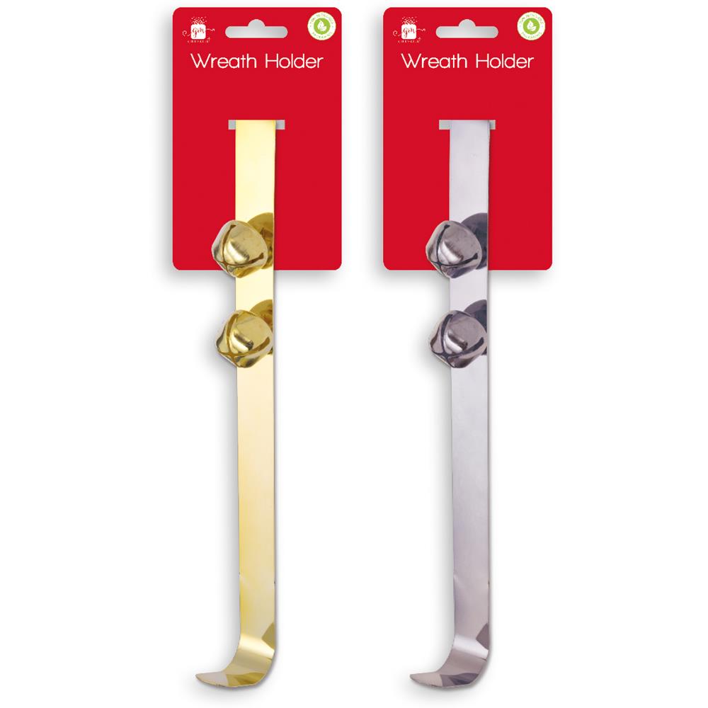 Metal Door Christmas Wreath Holder with Bells. Two assorted colours. One random colour will be supplied.