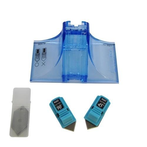 Mount Cutter, with two cutting angles 45 degree´ and 90 degree´ for use with 7321 aluminium ruler. Contains two blades plus three spare blades, cuts materials up to 7mm thick.