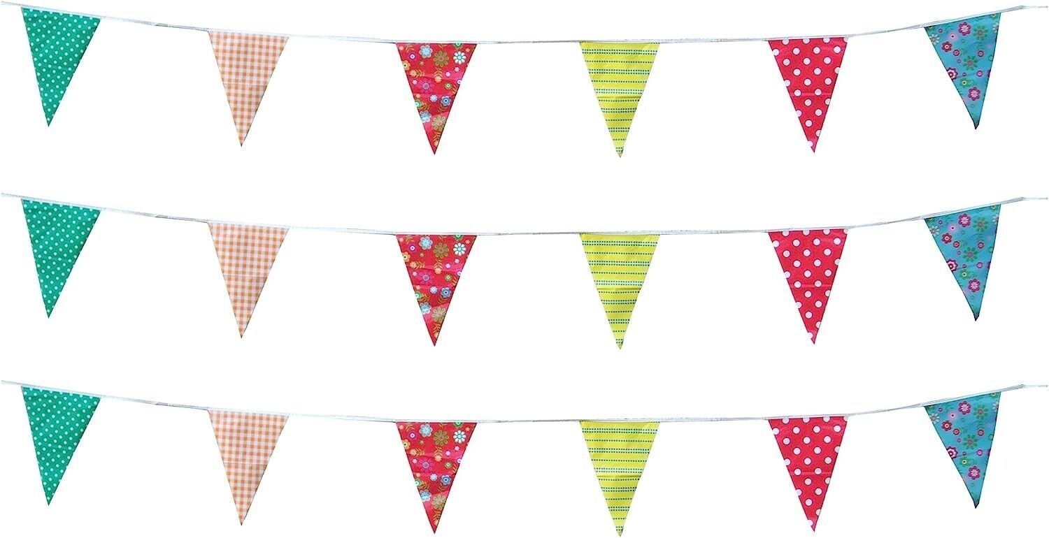 Multicoloured Shabby Chic Vintage Print Bunting with 35 Pennants. Material: PVC. Approx. size of each Flag/ Pennant 30x20cm.