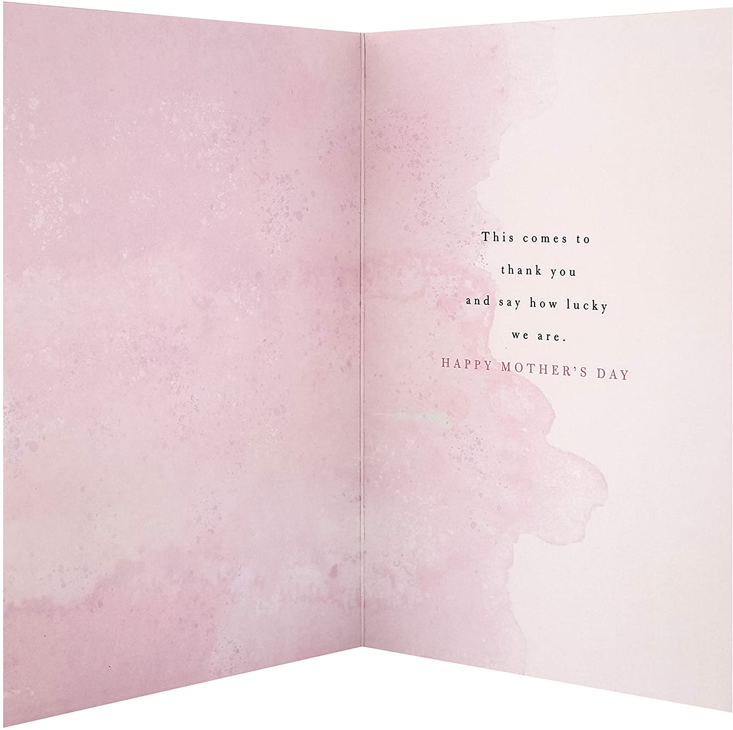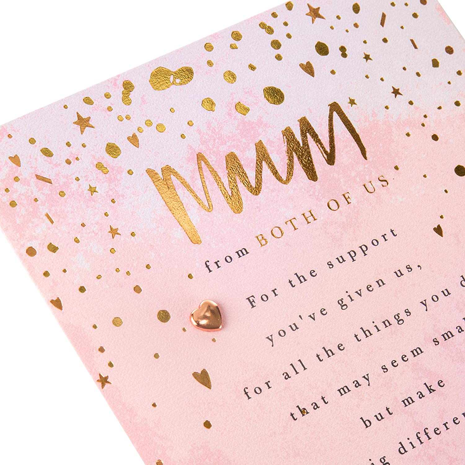 Make sure that Mum knows just how much she means to both of you with this gorgeous Mother's Day card from Hallmark. Printed on FSC certified board, with rose gold foil lettering and details, gold foil highlights, a rose gold heart attachment and a loving, appreciative message, it's a beautiful way to say thank you for everything she does. Postage: Standard UK Letter Size.