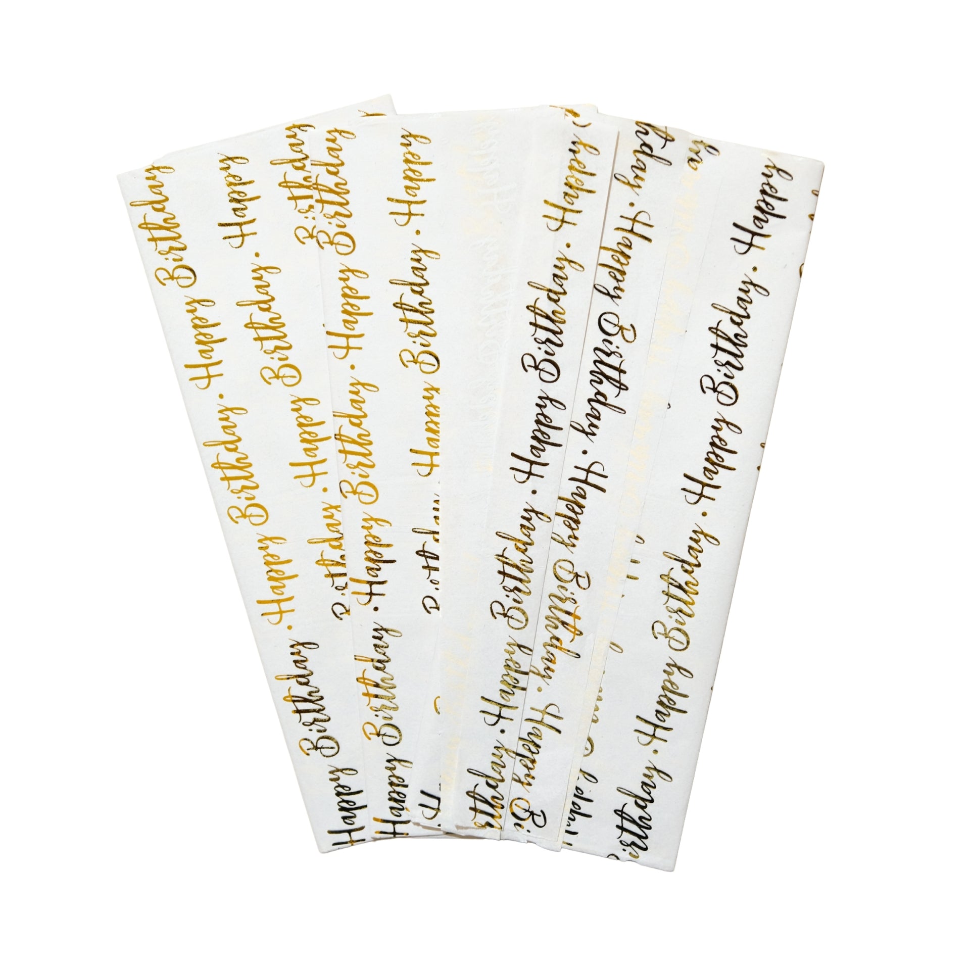 - Pack of 10 Happy Birthday Script Luxury Gold Metallic Plastic-Free 18gsm Tissue Paper Sheets 50x70cm - Patterned Tissue Paper for Xmas, New Year, Party, Wedding, Birthday Packing Present Gift Box DIY Arts Crafts