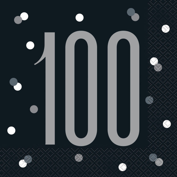 - Pack of 16 Birthday Black Glitz Number 100 Luncheon Napkins
