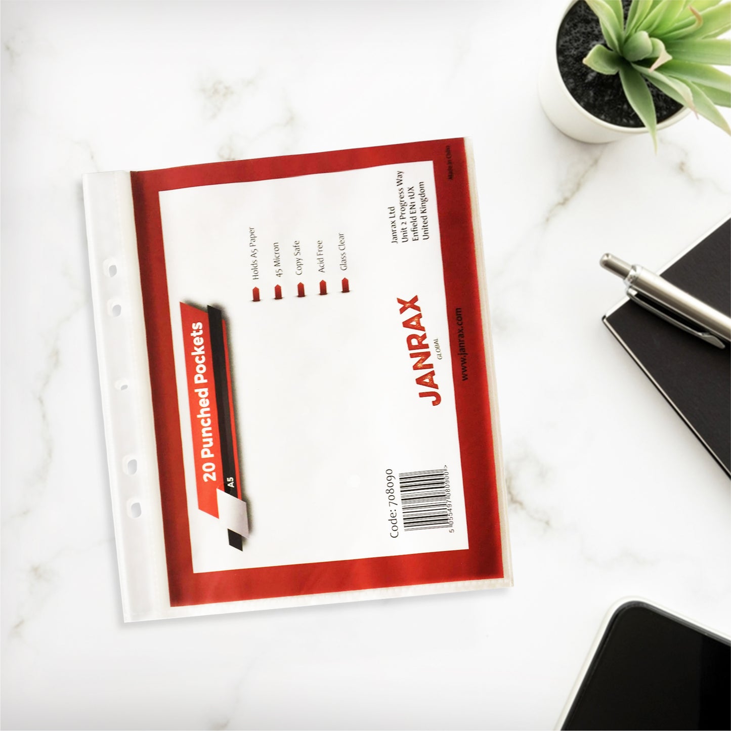 Pack of 20 A5 Glass Clear Punched Pockets by Janrax