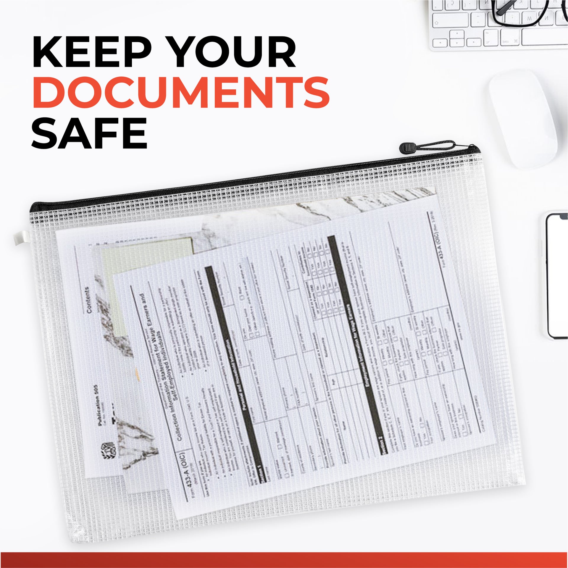Pack of 24 A5 Black Zip Strong Mesh Bags - Tough Waterproof Storage. Transparent strong mesh reinforced bag with coloured zip. Zip cord for easy opening. A5 Size. 250 Micron. Ideal cases for storing and protecting documents and products. Range of colours from the Janrax range.