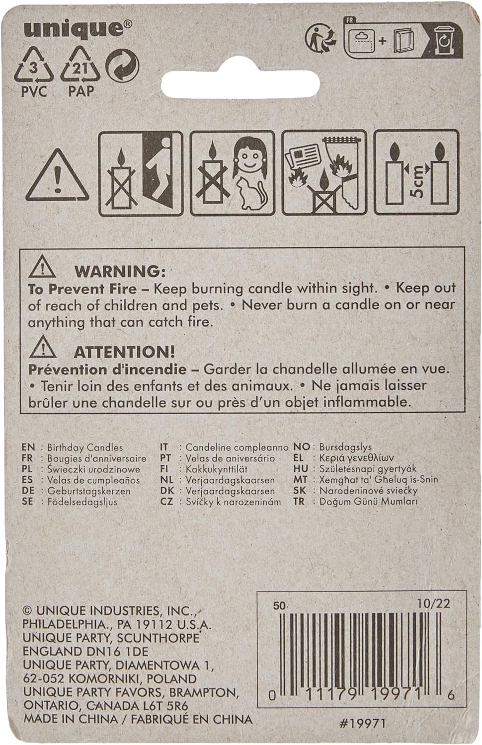 Pack of 24 Blue, White & Silver Spiral Birthday Candles. Cake candles measure 2.5" (6cm) in height. Great for any birthday party or milestone celebration. Quick and easy way to decorate any type of cake. Combine with other birthday party supplies from Unique Party.