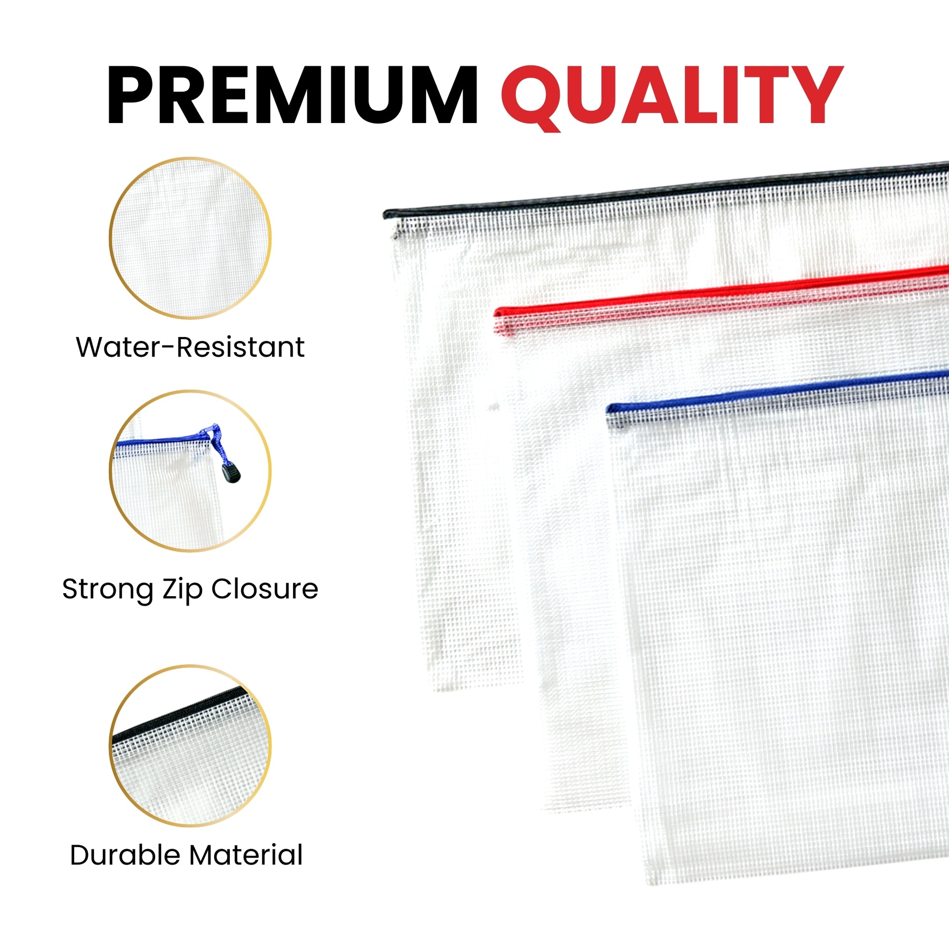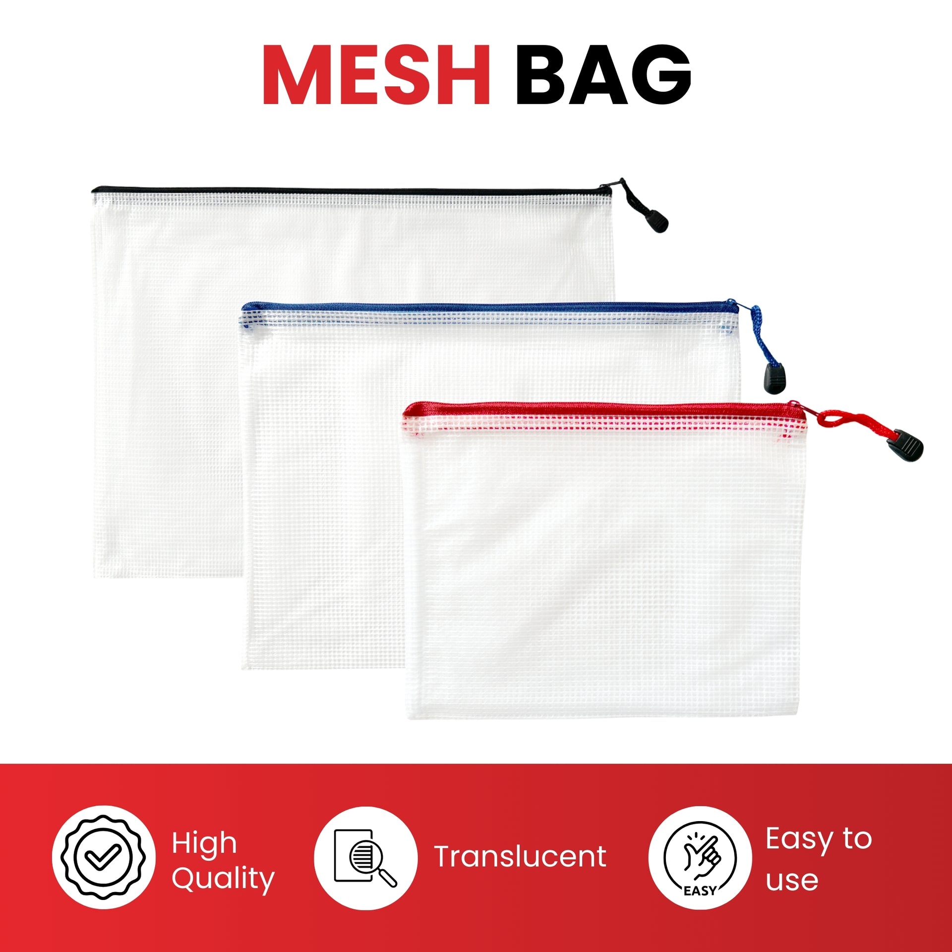 - Pack of 3 Red Zip Assorted Sizes Strong Mesh Bags - A3, A4, A5 - Tough Waterproof Storage