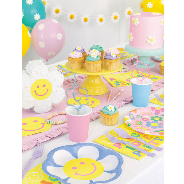 Pack of 5 Daisy Shaped Plastic Straws. Washable straws measure 20 cm in height. Ideal for a 70's theme birthday party. Add to drinks or use in craft projects. Freshen up your party drinks with our Daisy Shaped Plastic Straws. These reusable plastic drinking straws are shaped like daisies, making them perfect for a spring picnic, groovy birthday party or 70's theme party. Set out these straws in a jar, and let guests grab them as needed. Bring more flower power to your celebration and shop the rest of our Groovy Birthday party supplies.