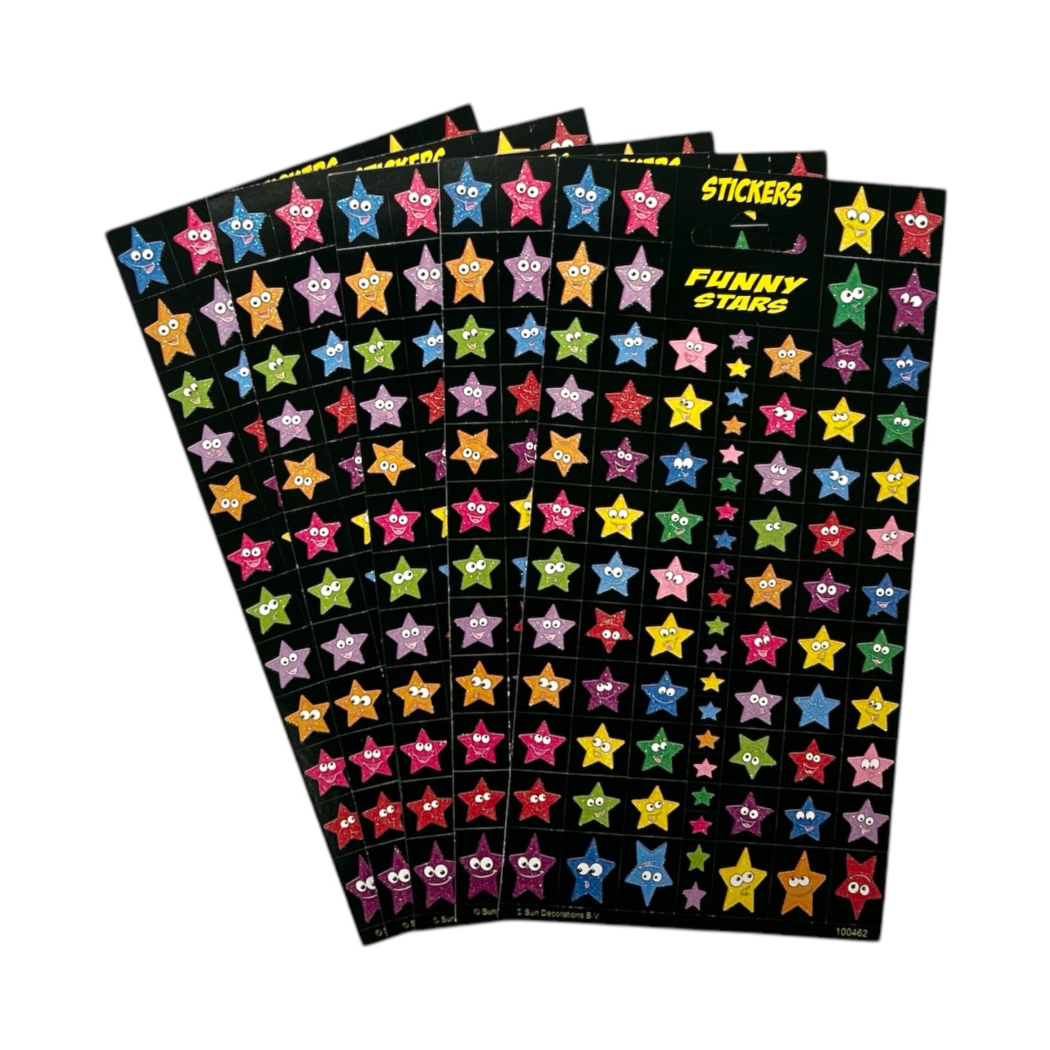 - Pack of 5 Glitter Finished Funny Stars Sticker Sheets
