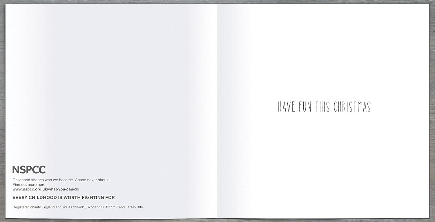 Remind them to have fun and relax with this pack of 8 charity Christmas cards, supporting the NSPCC You are viewing: A pack of 8 Charity Christmas Cards featuring snowmen Occasion: Perfect to send at Christmas Message Inside: HAVE FUN THIS CHRISTMAS Details: Each pack includes 8 cards in the same design and each purchase includes a charity donation of 40p per pack supporting the NSPCC National Society for the Prevention of Cruelty to Children Good to know: Made from sustainable card, each set of cards comes in a plastic free pack complete with white envelopes Card Sizes: Square 13.5cm x 13.5cm 5" x 5" Postal Size: Letter