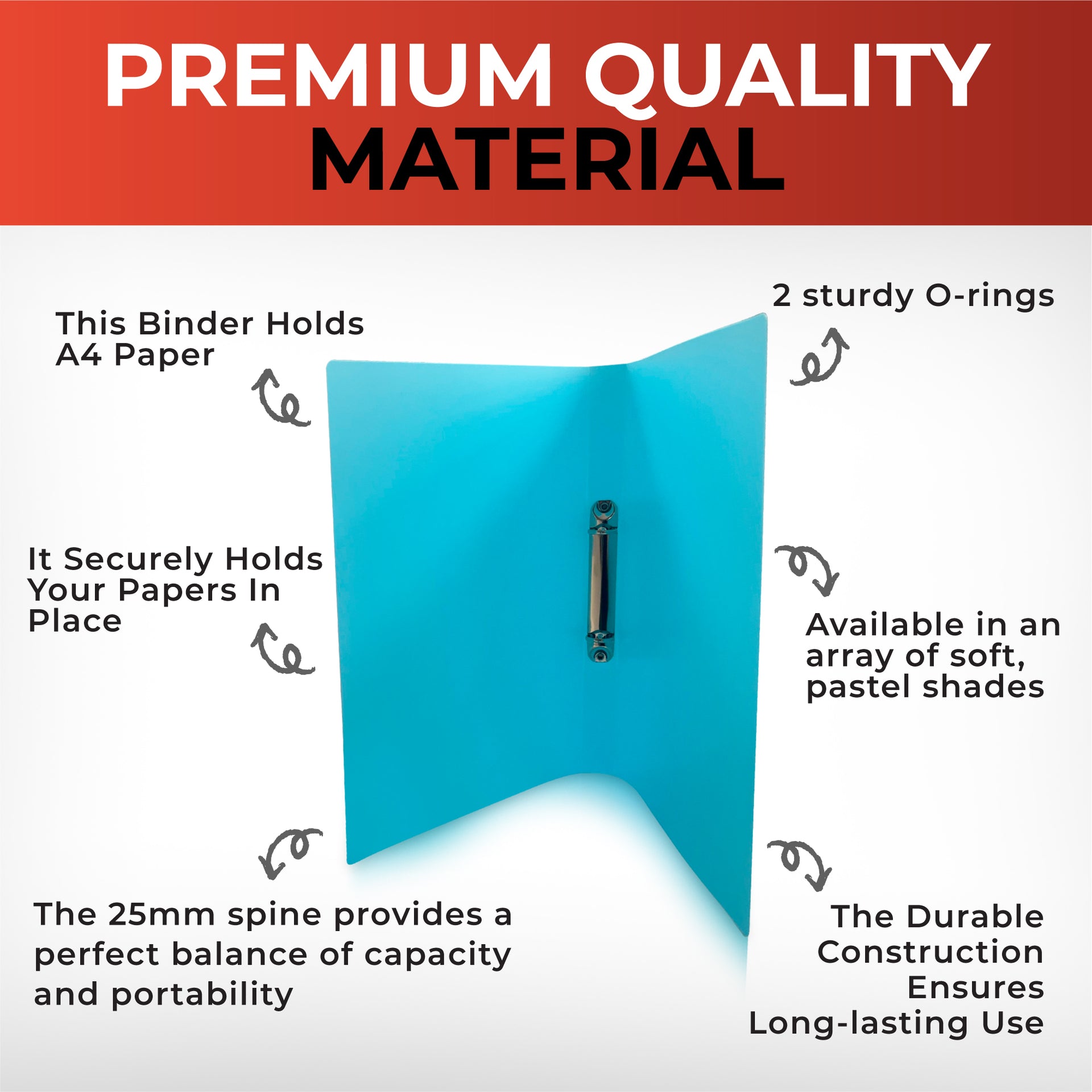 Pastel Pink A4 Ring Binder. Introducing the Pastel Colour A4 Ring Binder, a stylish and functional addition to your organisational tools. This binder holds A4 paper, ensuring ample space for all your documents, notes, and projects. Equipped with 2 sturdy O-rings, it securely holds your papers in place. The 25mm spine provides a perfect balance of capacity and portability, allowing you to store multiple sheets without the bulk. Available in an array of soft, pastel shades, it adds a touch of elegance and calm to your workspace. The durable construction ensures long-lasting use, keeping your papers secure and neatly arranged. Ideal for students, professionals, and anyone who values both aesthetics and practicality in their office supplies.