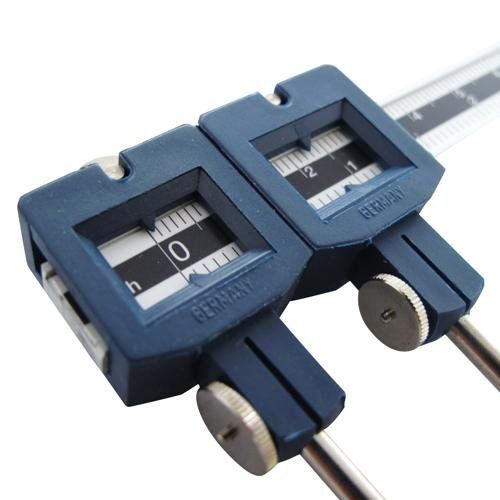 Professional Beam Compass a technical aluminium beam compass with two separate beams incorporating a connector allowing a maximum radius of 65cm. Marked inches/cm and supplied with divider, pencil and pen attachments and spare parts container with leads and needle. Individually packed in a hanging transparent plastic box.