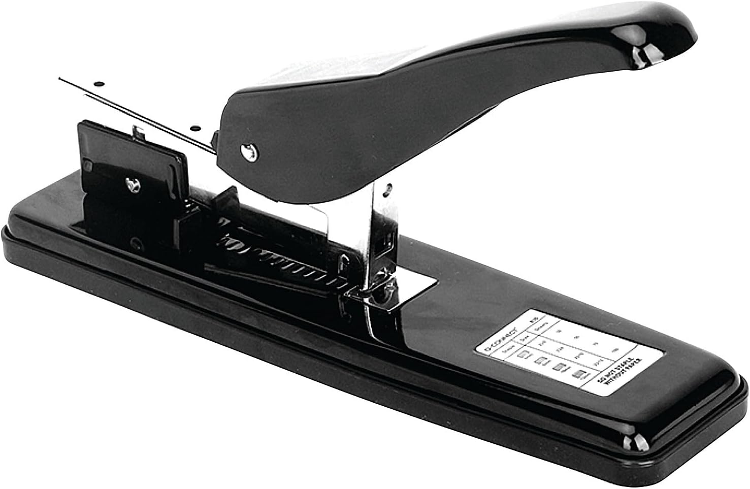 Heavy duty stapler with 115 sheet capacity. Features tough all metal construction. Adjustable depth gauge 10-70mm and non slip rubber base.