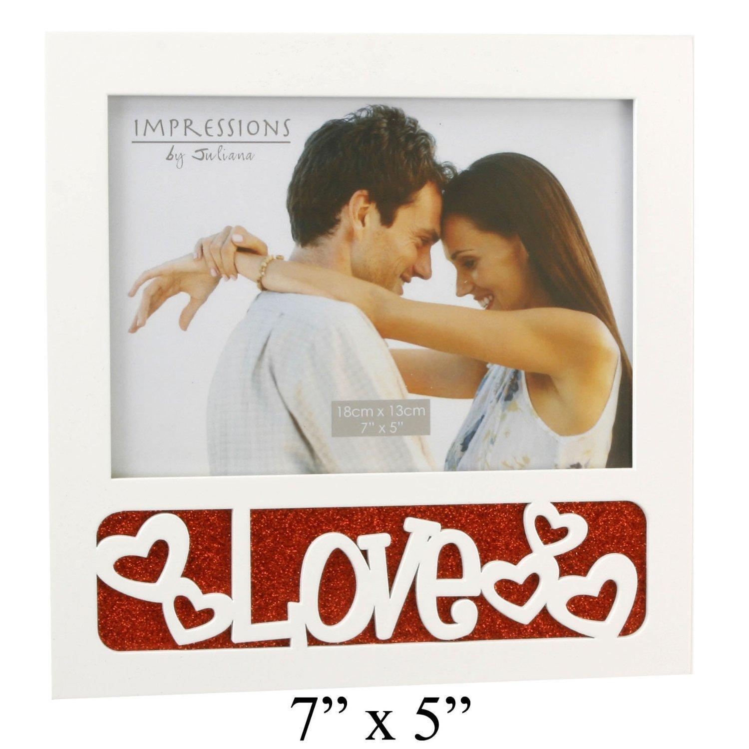 - Red Love Juliana White Wooden Cut Out Glitter 5" x 7" Frame