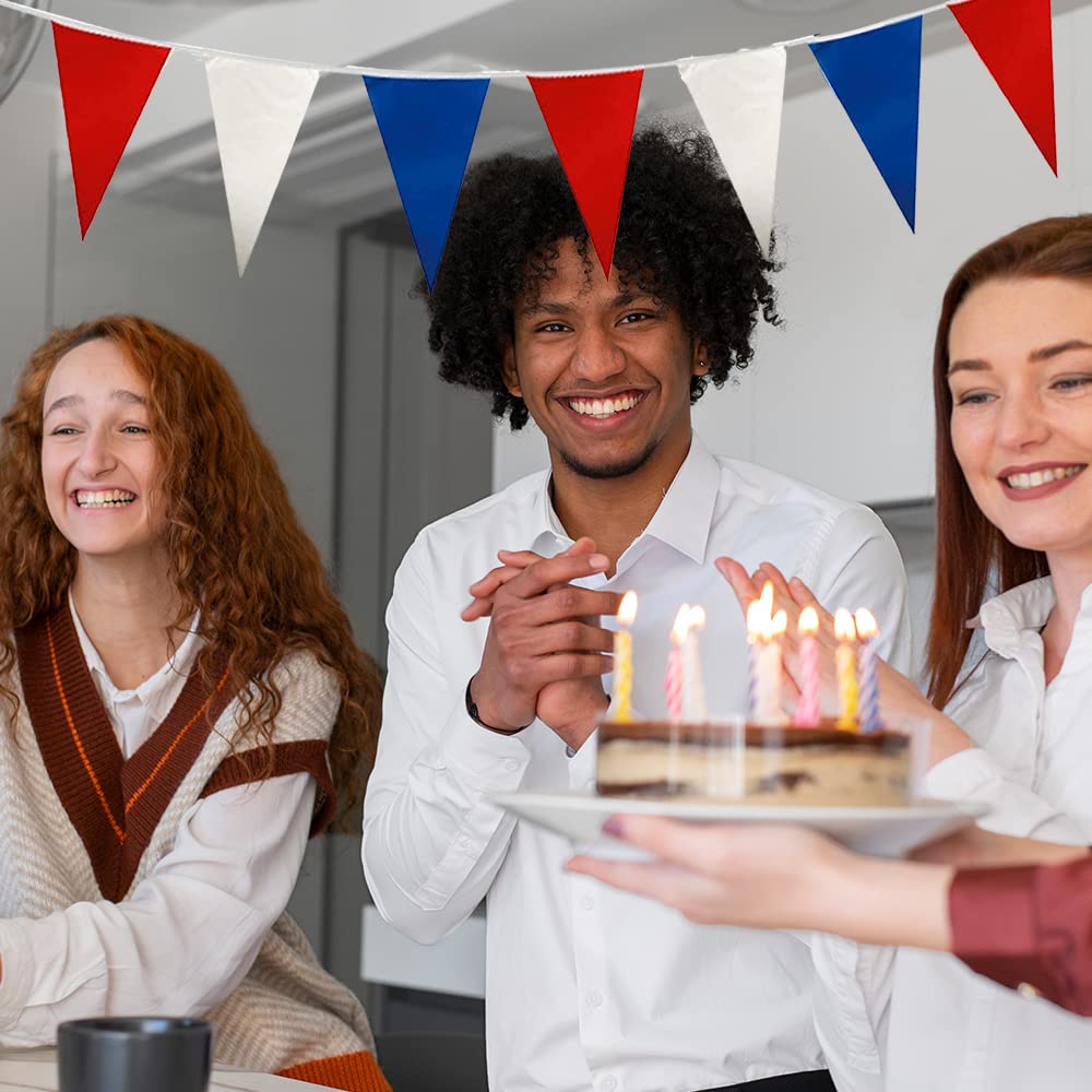 Red White and Blue 7m Bunting. Material: PVC. Approx size of each Flag/ Pennant 30x20cm. Introducing the vibrant and versatile Bunting, a delightful addition to any celebration or decorative endeavor. This charming bunting boasts a length of 7 meters, providing ample coverage to adorn various spaces with whimsical flair. Crafted with high-quality, durable materials, each of the pennants is designed to withstand outdoor elements, making it suitable for both indoor and outdoor use. Whether you're hosting a festive gathering, sprucing up a garden party, or adding a pop of color to a room, this bunting is sure to captivate attention and evoke a sense of joy and celebration. With its eye-catching design and array of vibrant colors, it effortlessly infuses any setting with a playful and festive atmosphere. Ideal for birthdays, weddings, graduations, or simply adding a touch of charm to everyday life, the 7m Bunting offers endless possibilities for creative expression. Hang it along fences, walls, ceilings, or across outdoor spaces to instantly transform any environment into a visually stunning spectacle.