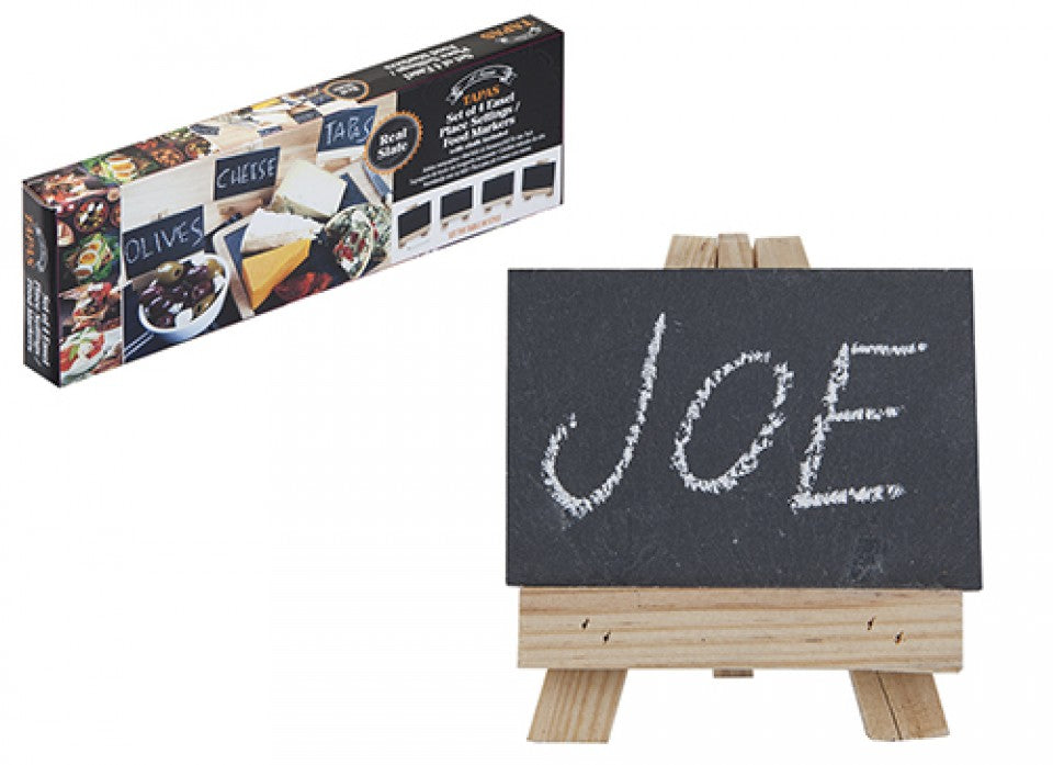 Set of 4" Mini Wooden Easel with Slate Place Setting. Entertaining has been made easy with this fantastic product from the Tapas range. Featuring wooden and slate elements, this item is elegant as well as practical. Representing fantastic value for money, this is a product not to be missed out on!