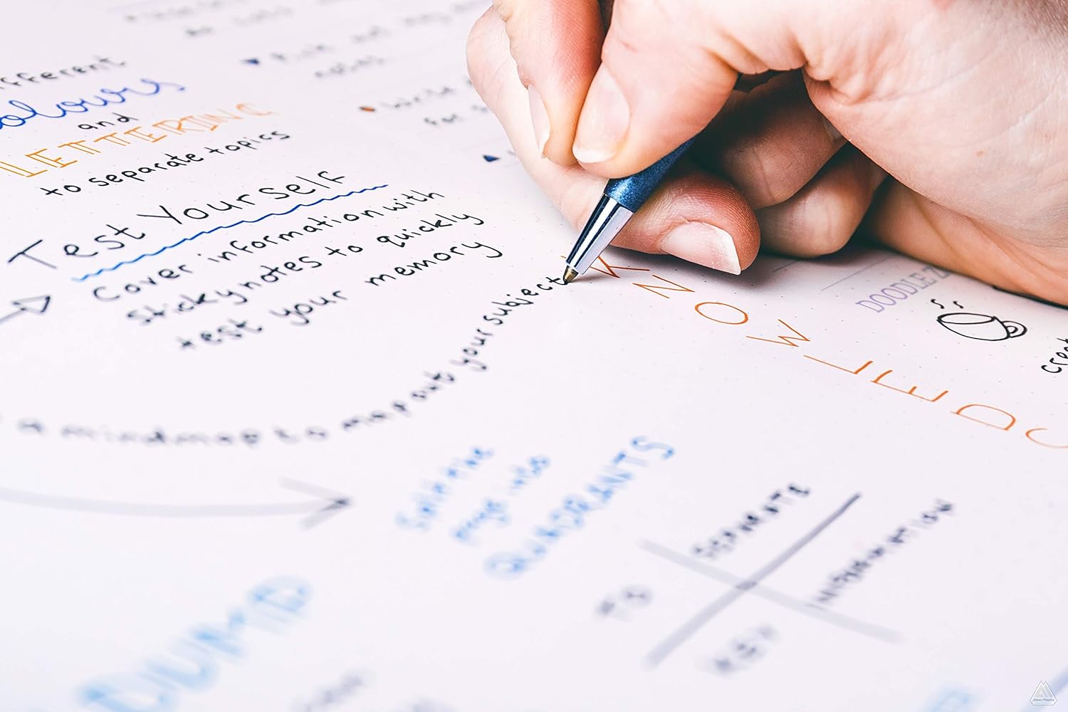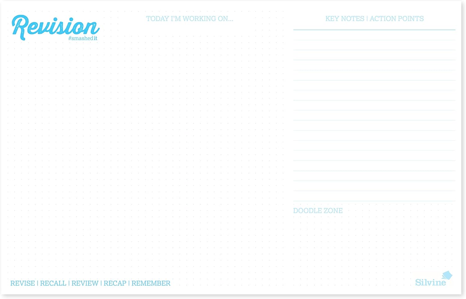 48 sheets 360x230mm Removable cover printed with "how to" guide Space for mindmaps, key notes, action points and doodles Dot grid areas for flexible note taking