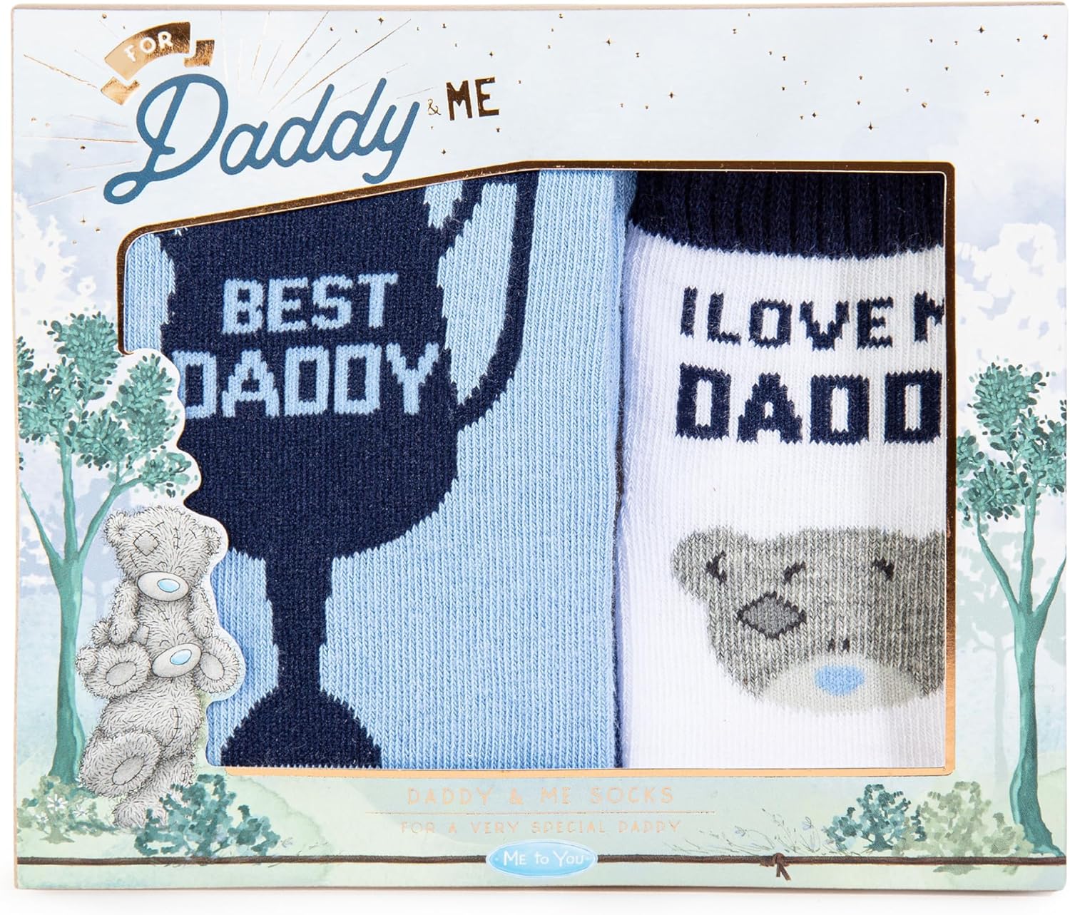 CUTE GIFT FOR FATHER'S DAY - this adorable Tatty Teddy socks set includes two pairs - one for Daddy and one for his little son or daughter! SUPERSOFT SOCKS - machine washable at 30 degrees, the adult socks are designed to fit men's shoe size 9-12, while the baby socks will fit aged 12-24 months ILLUSTRATED PACKAGING - the recyclable packaging features hand drawn Me to You artwork and luxury gold detail to make this a gift that's a pleasure to give and receive LOVING WORDS - embroidered into the baby socks are the words 'I love my daddy' while the adult socks feature the caption 'Best daddy'