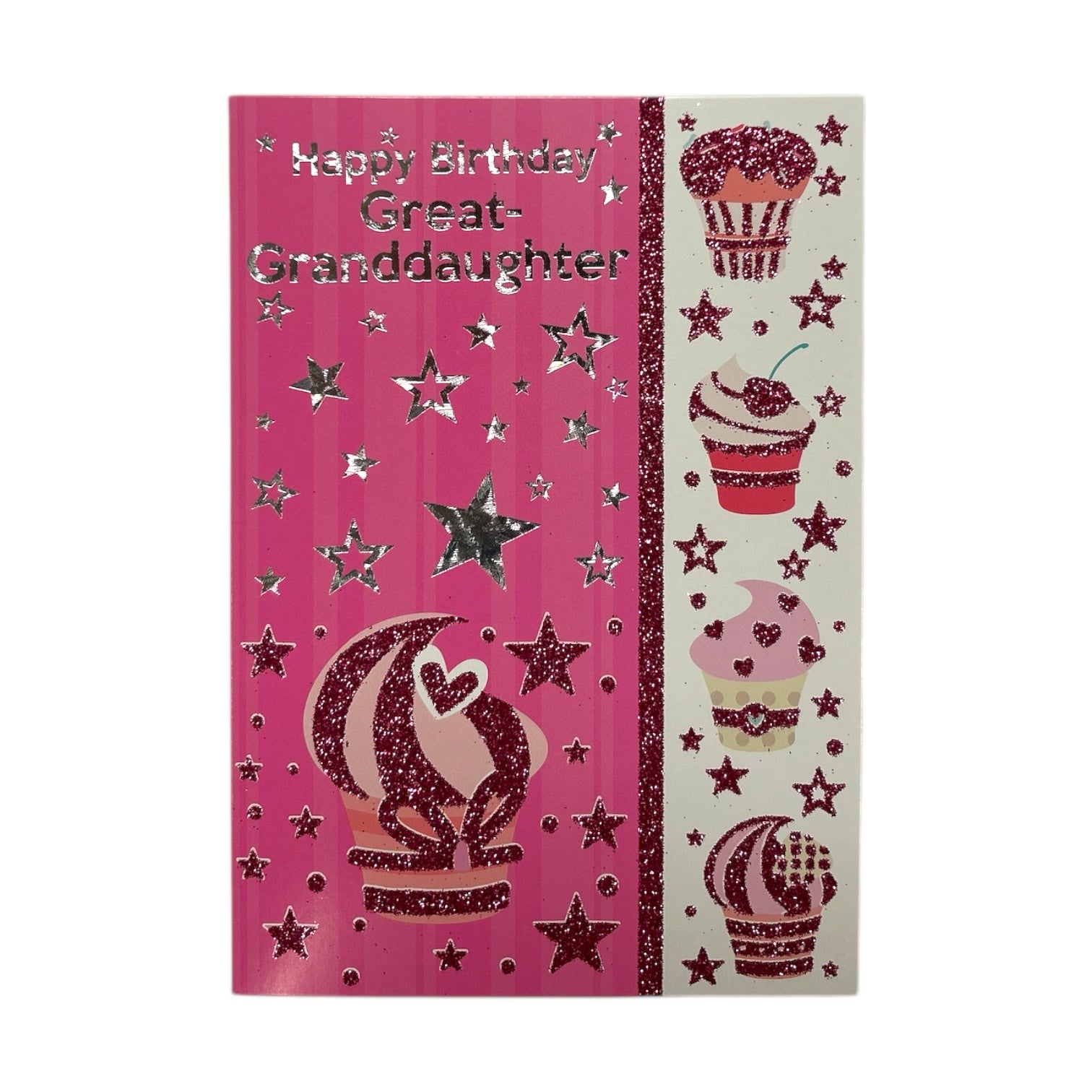 - To Great Granddaughter Juvenile Pink Cupcakes Design Birthday Card