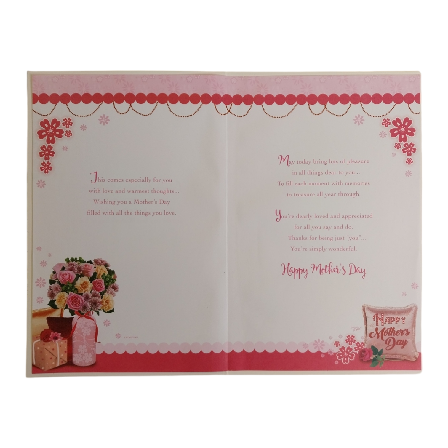 Send your Wife a beautiful Mother's day wish and let her know she means the world to you with this Mother's Day card from Xpress Yourself. A pretty card, suitable for sending a kind, heartfelt message to your lovely Wife on mother's day. Featuring a beautiful design of attractive Window with Flower Vase and Gift Ribbon attached, and a heartfelt message with a floral and embossed, gold foil and Glitter finished details. The card comes with a coordinating envelope. Card size approx. : 27.5 x 18.5cm.