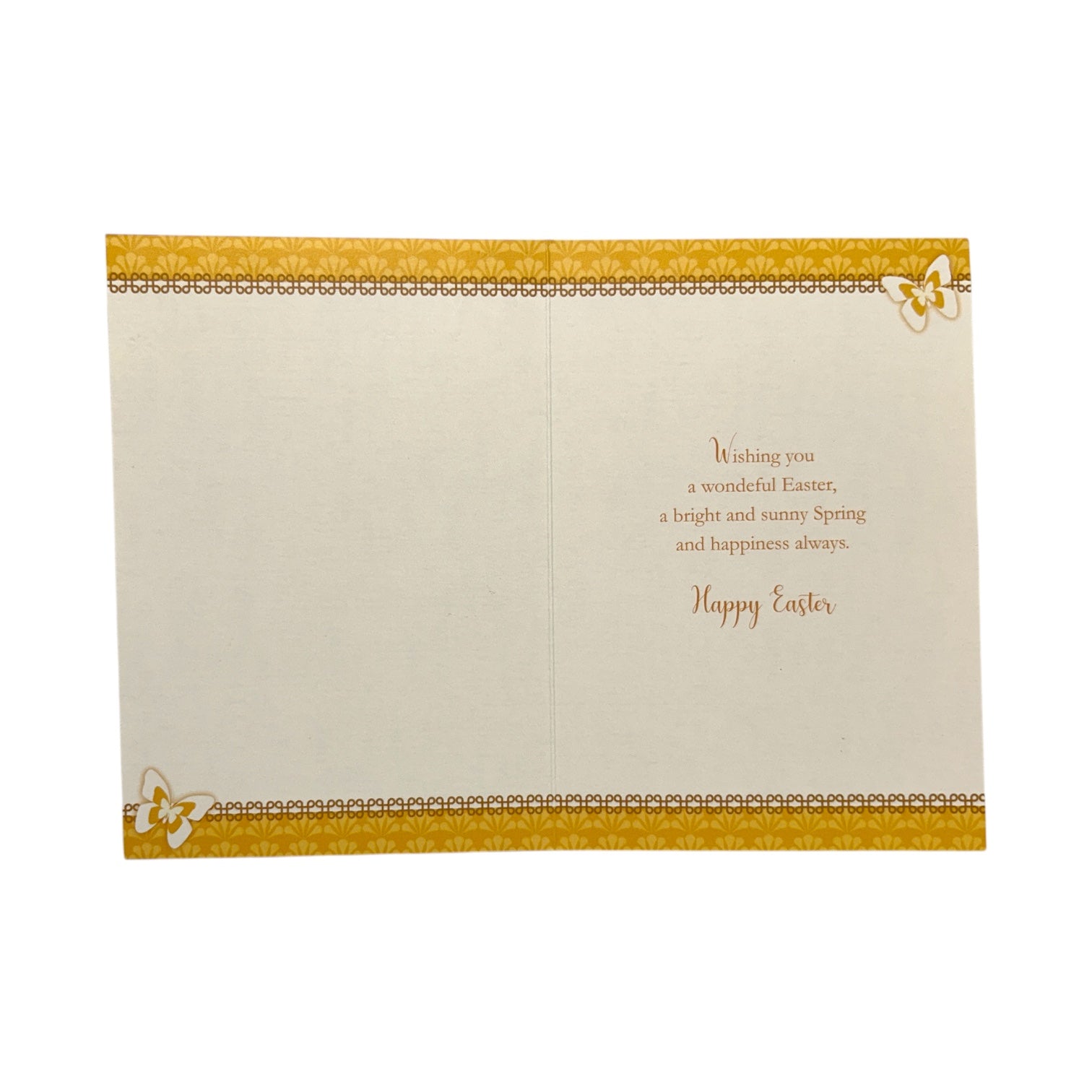 Celebrate Easter with this beautifully designed photographic white spring flowers card, perfect for sharing warm wishes with all the family. Featuring a stunning arrangement of flowers and butterfly, this elegant card is adorned with embossed details, and delicate foil accents, adding a touch of sophistication. The heartfelt message on the front reads, "Happy Easter To A Special Friend" making it a thoughtful choice for your loved ones. Complete with a coordinating envelope, this card is a wonderful way to spread joy and celebrate the season. Card size: Approx. 19.5 x 14 cm.
