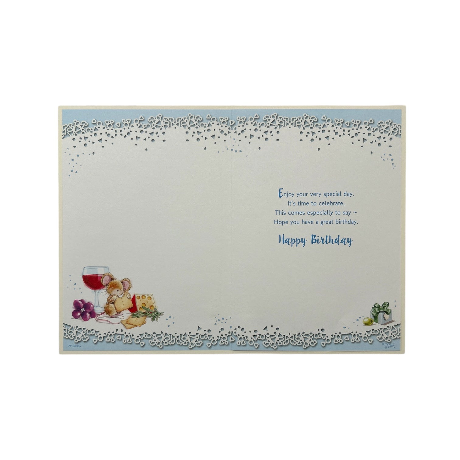 Celebrate your Grandad’s birthday with this delightful and fun card. The front design features a charming scene of a cute mouse enjoying a piece of cheese, sitting next to a wine glass and grapes, bringing a lighthearted touch to the occasion. The card is beautifully embossed with intricate details and enhanced with foil accents, giving it a touch of elegance and charm. Inside, you'll find warm Birthday Wishes that express your love and appreciation. This card is the perfect way to wish your Grandad a wonderful birthday. The card comes with a coordinating envelope. Card Size: Approx. 19.5 x 14 cm.