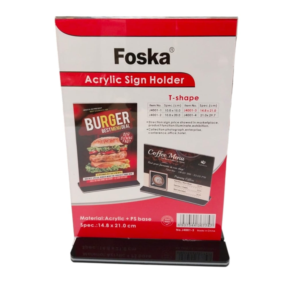 - Vertical Design T-Shape Acrylic Sign Holder 14.8 x 21cm