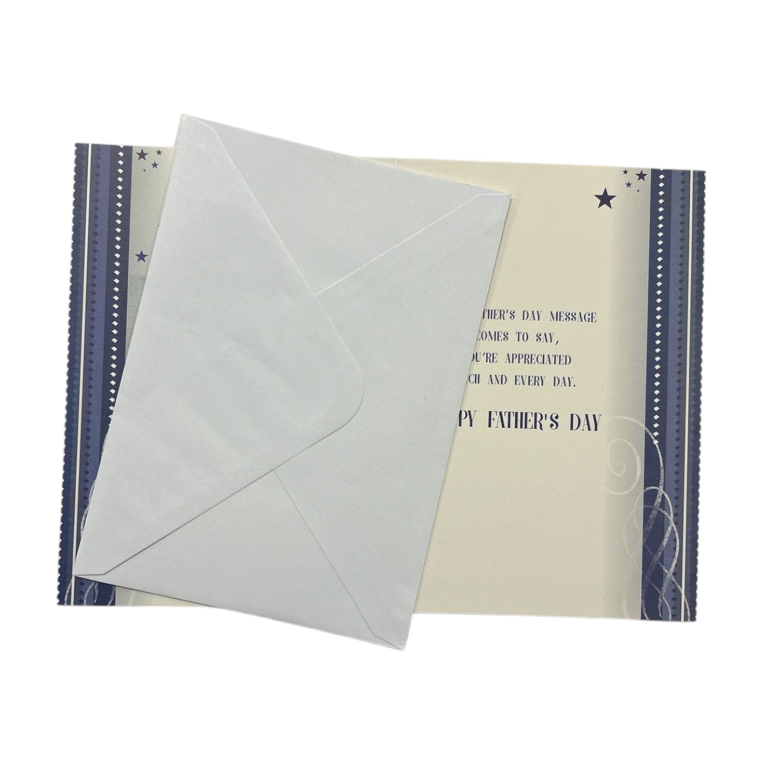 This heartfelt Father's Day card for him features elegant typography and a nostalgic illustration of a classic car, symbolizing love and appreciation. The balanced composition places the greeting "HAPPY FATHER'S DAY FATHER" at the top, with the vintage car and a quaint house below, evoking warmth and family ties. Decorative stars and stripes frame the design, adding visual interest. Inside, the sentiment continues with heartfelt birthday wishes, making this a meaningful and celebratory keepsake for a special occasion. The card comes with a coordinating envelope. Approximate size: 19.5" x 14"