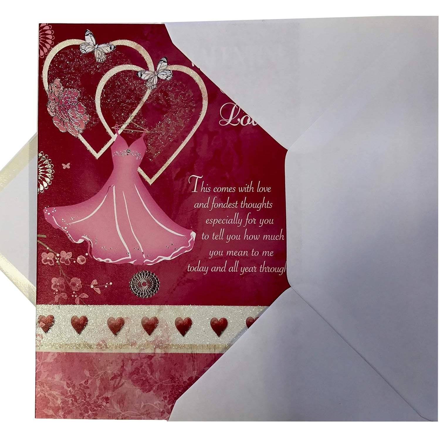 - With Love Sentimental Verse Morden Pink Dress & Heart Valentine's Day Card